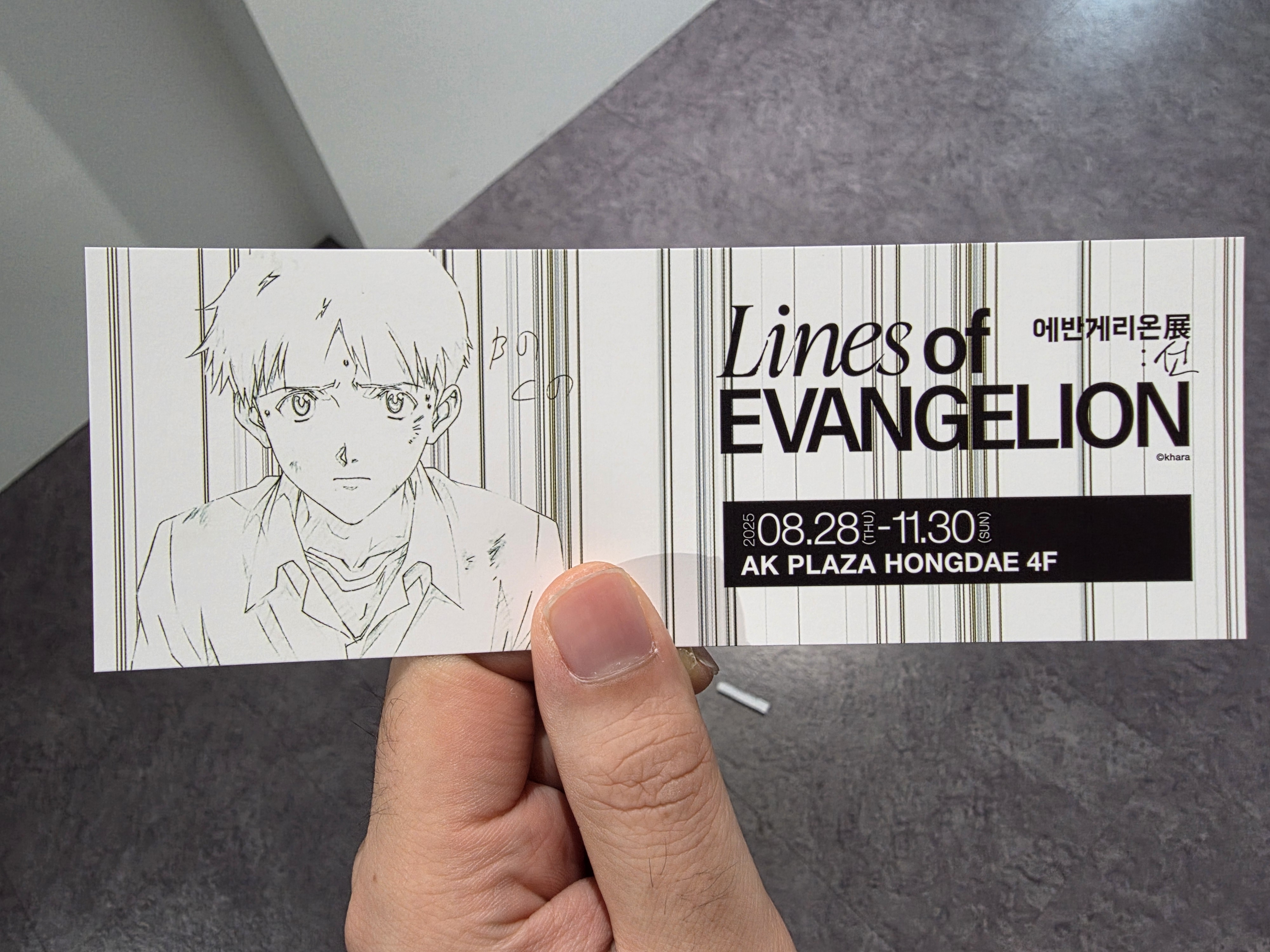 이번 글은 전시회 후기입니다. 지난 8월 28일부터 11월 30일까지 홍대 AK플라자 4층에서 열리고 있는 에반게리온 선 전시회, Lines of Evangelion에 갔다 왔습니다. 최근에 에반게리온 공식 이벤트, 콜라보들이 주변에서 많이 진행되고 있습니다.