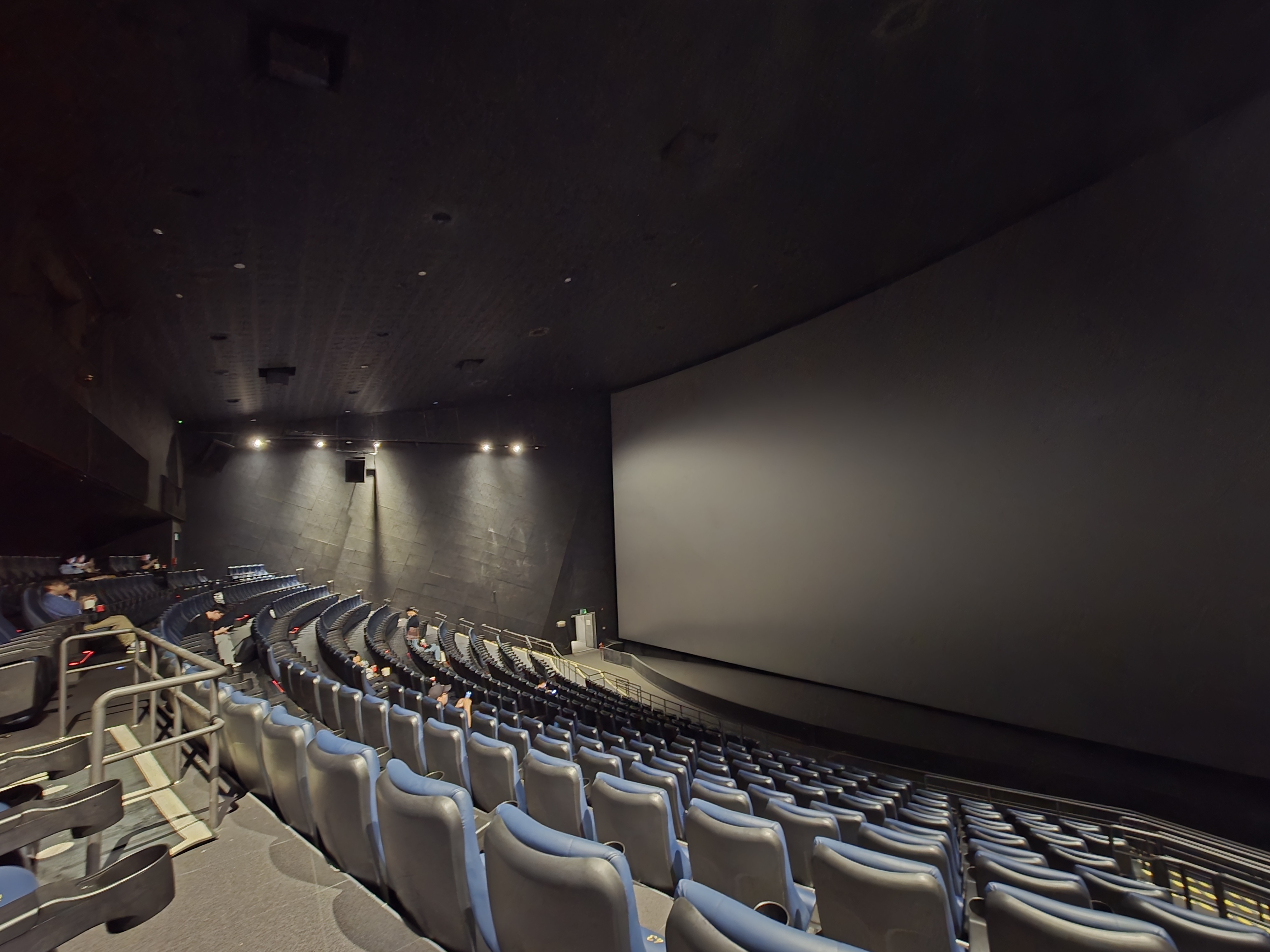 대신 다른 아이맥스관보다도 스크린을 더 곡선으로 둘러싼 구조로 좌석이 배치가 되어 있다보니 좀 더 스크린에 주목할 수 있게 되어 있습니다.