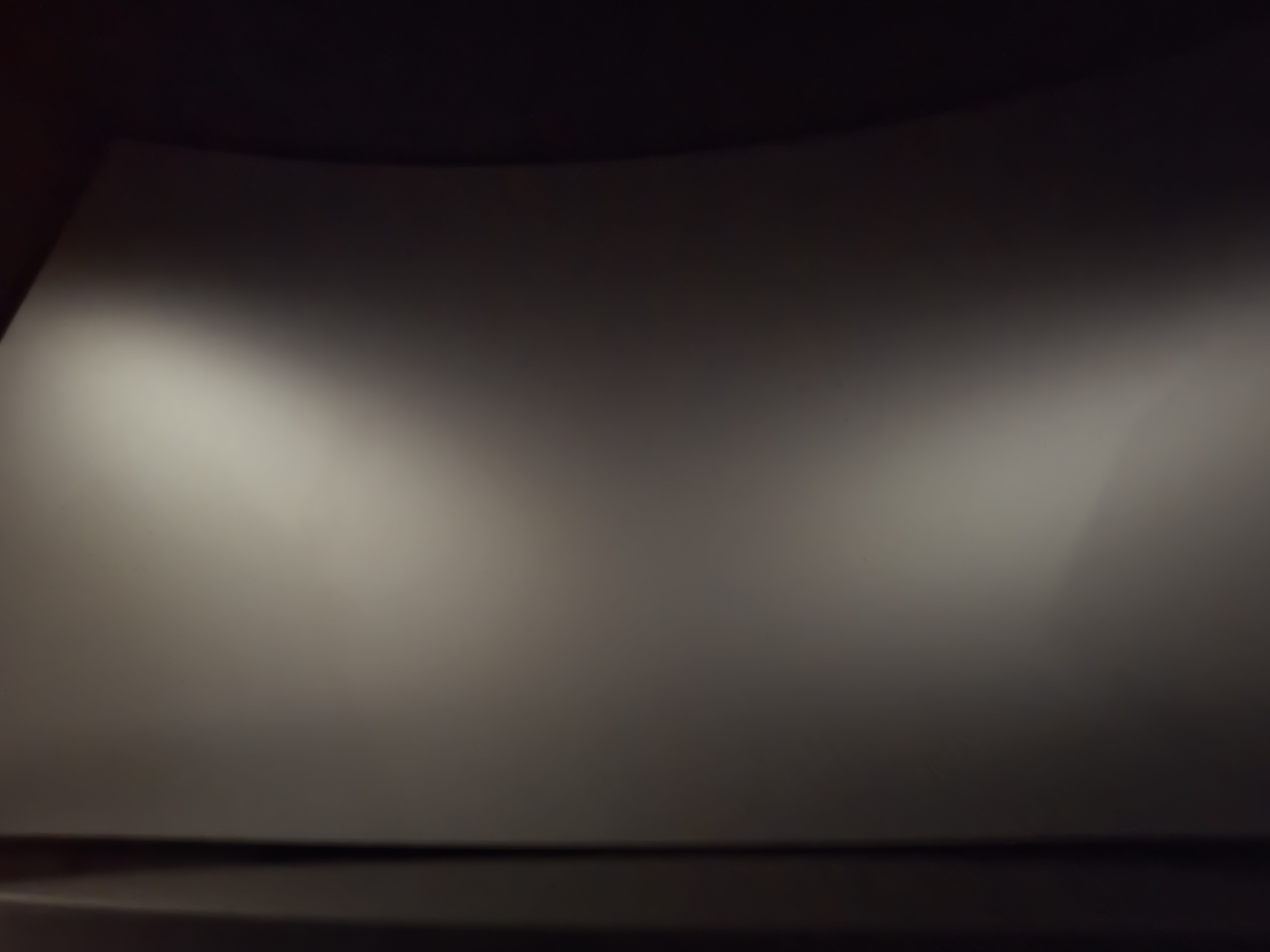 스타리움관으로 운영 당시에는 시네마스코프 비율의 스크린이 설치가 되었다가, 아이맥스관으로의 운영을 위해 무대를 철거하고 상영관 구조 내에서 가능한 최대의 수준으로 상하 비율을 늘려 1.9:1 비율 상영이 가능한 스크린을 설치한 모습입니다.