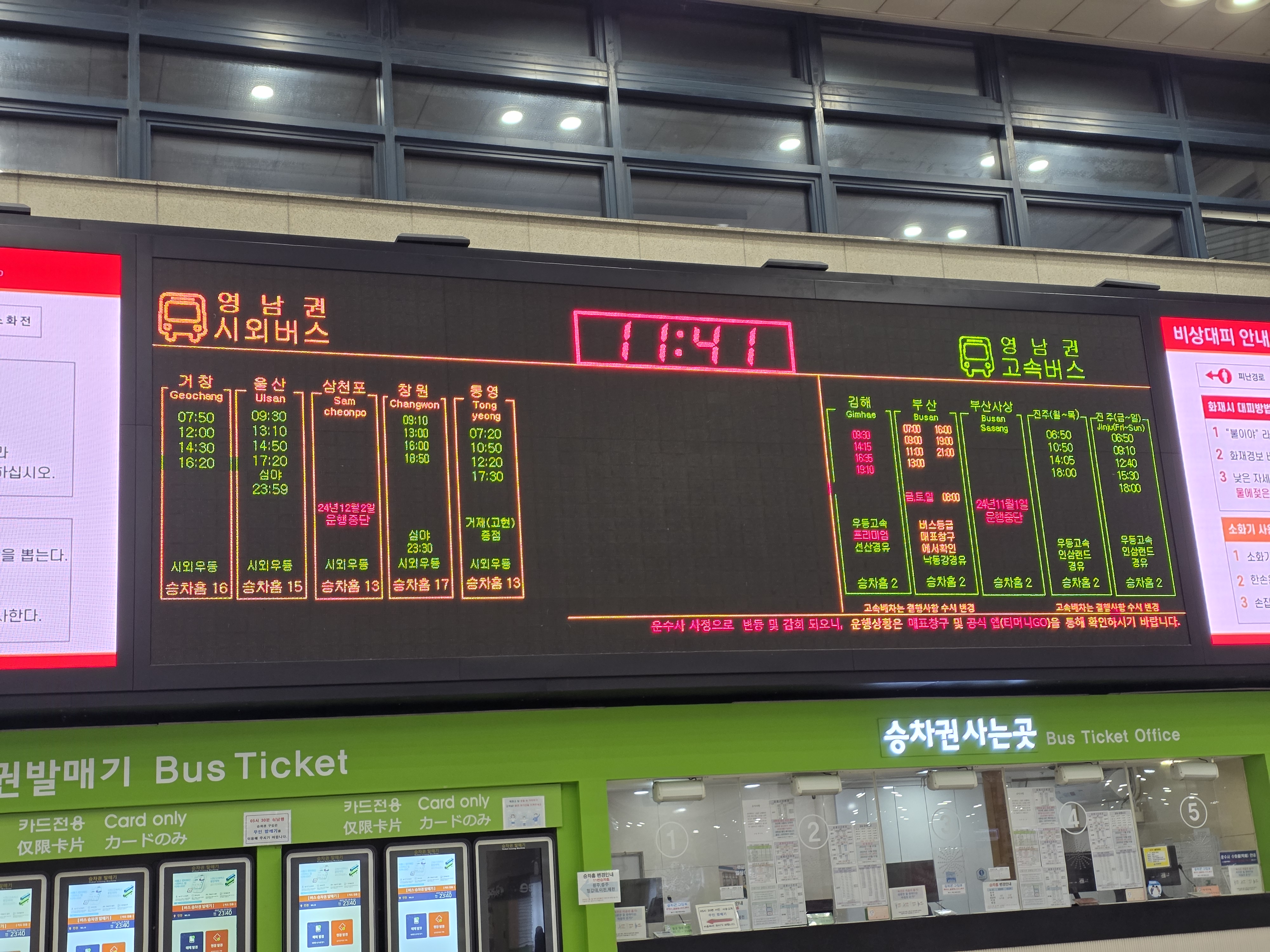 생각보다 훨씬 빨리, 1시간 일찍 울산시외버스터미널에 도착했습니다.새벽 4시 30분 정도에 도착을 했는데, 너무 이른 시간대라 뭘 할 수도 없었습니다.