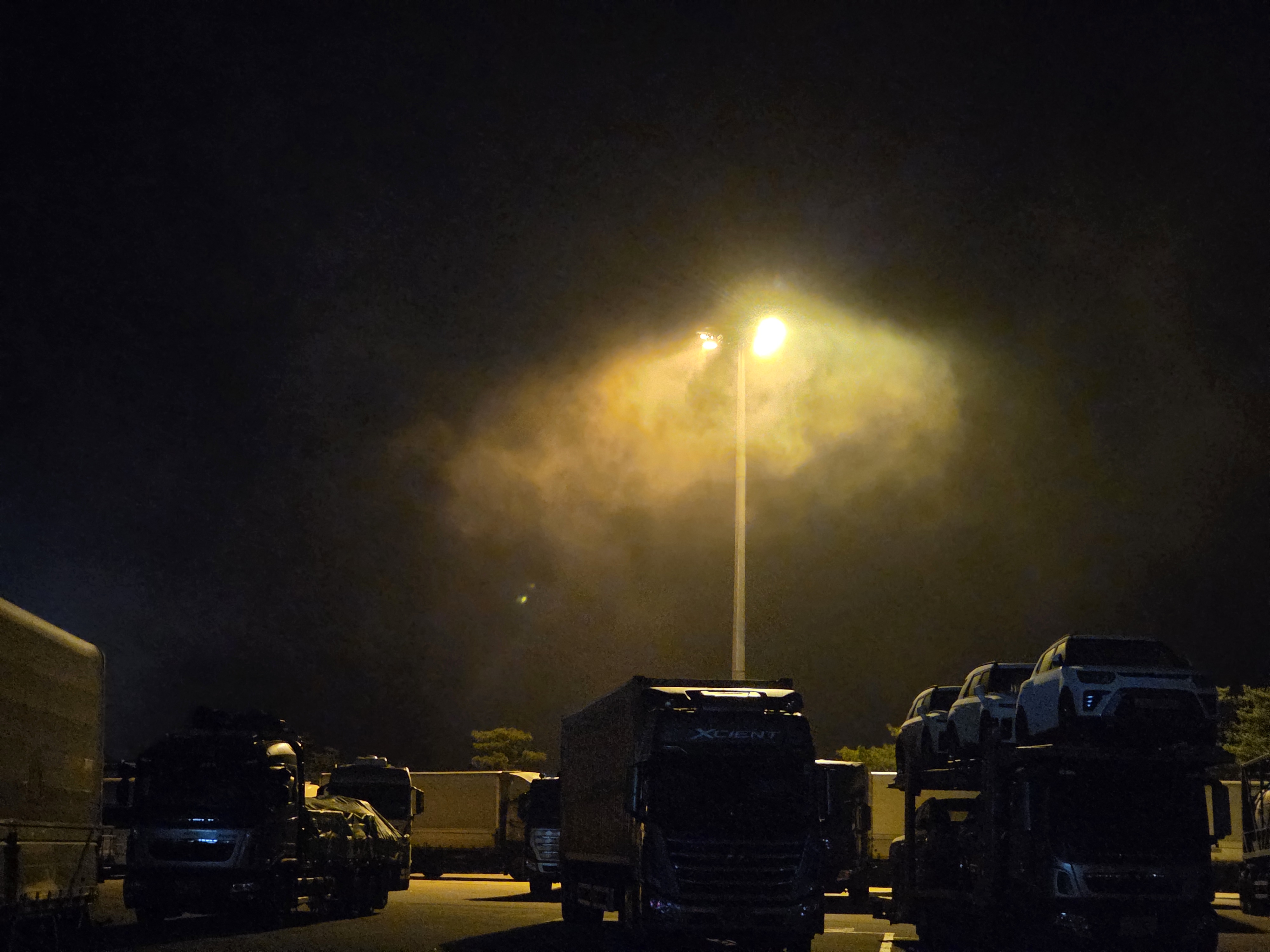 새벽 2시 좀 넘은 시간대에 낙동강의성휴게소에 잠시 정차하여 운전기사님이 휴식을 취합니다.
