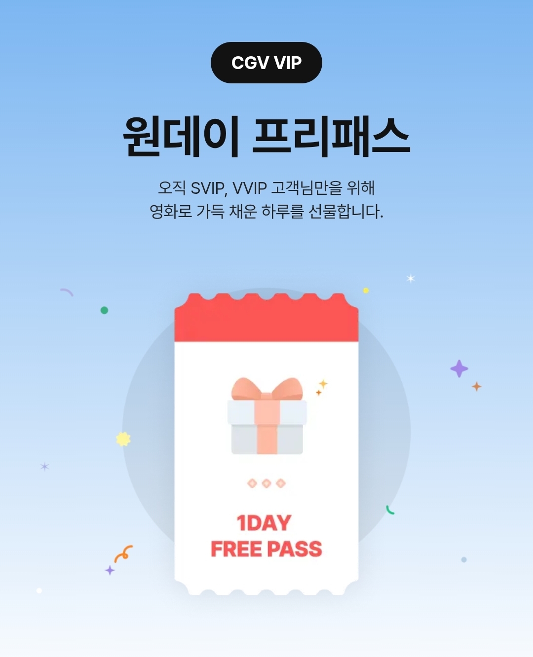 이렇게 CGV의 VVIP, SVIP 등급만 사용 할 수 있는 혜택인 원데이 프리패스에 대해서 알아봤습니다.