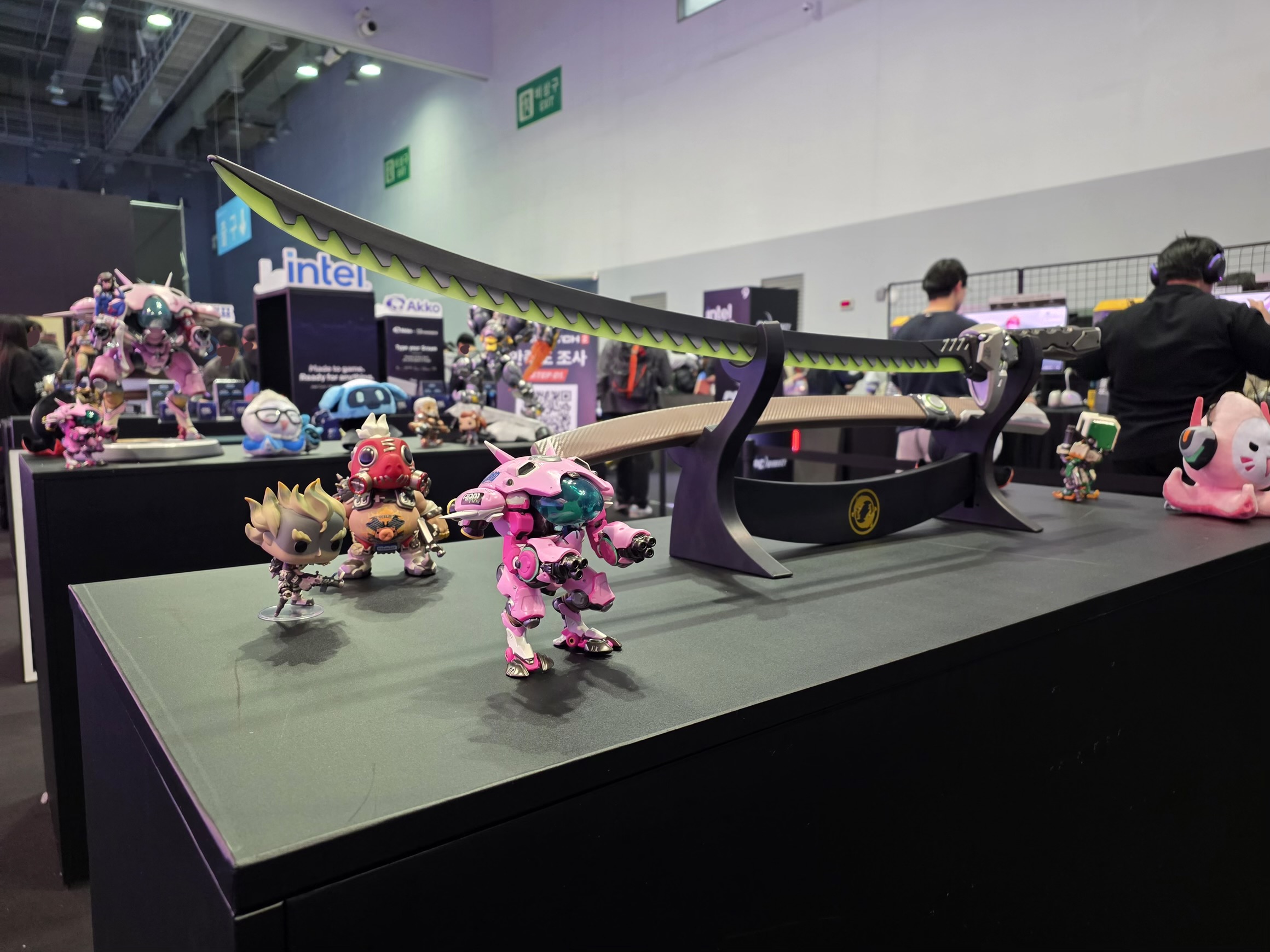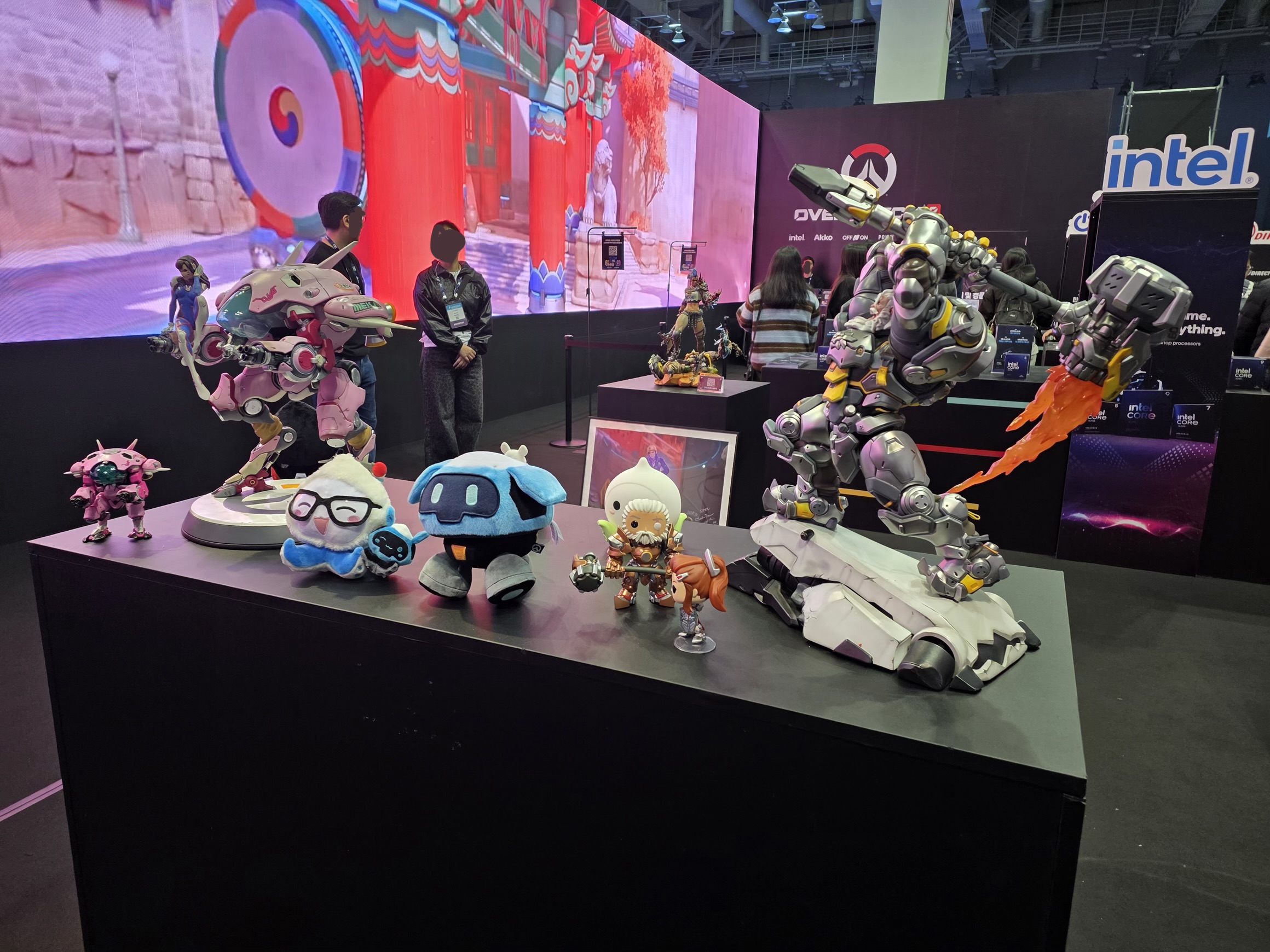 그리고 오버워치 스태츄들도 같이 전시된 모습입니다. 키보드는 신기한 종류들이 있었습니다.