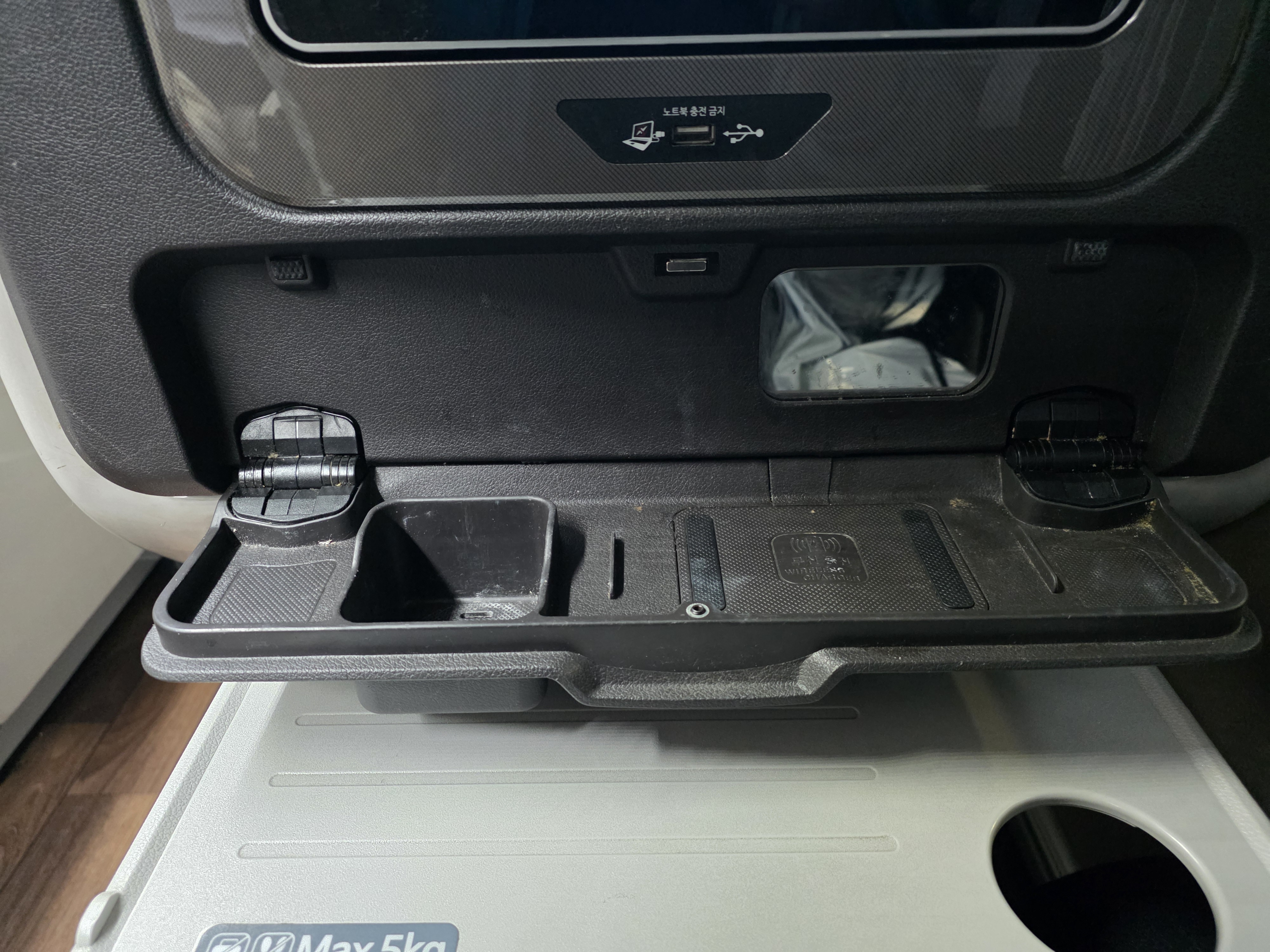 탁자는 2개가 있습니다. 아랫쪽에 있는 탁자는 무게 5KG까지 버틸 수 있는 탁자이고