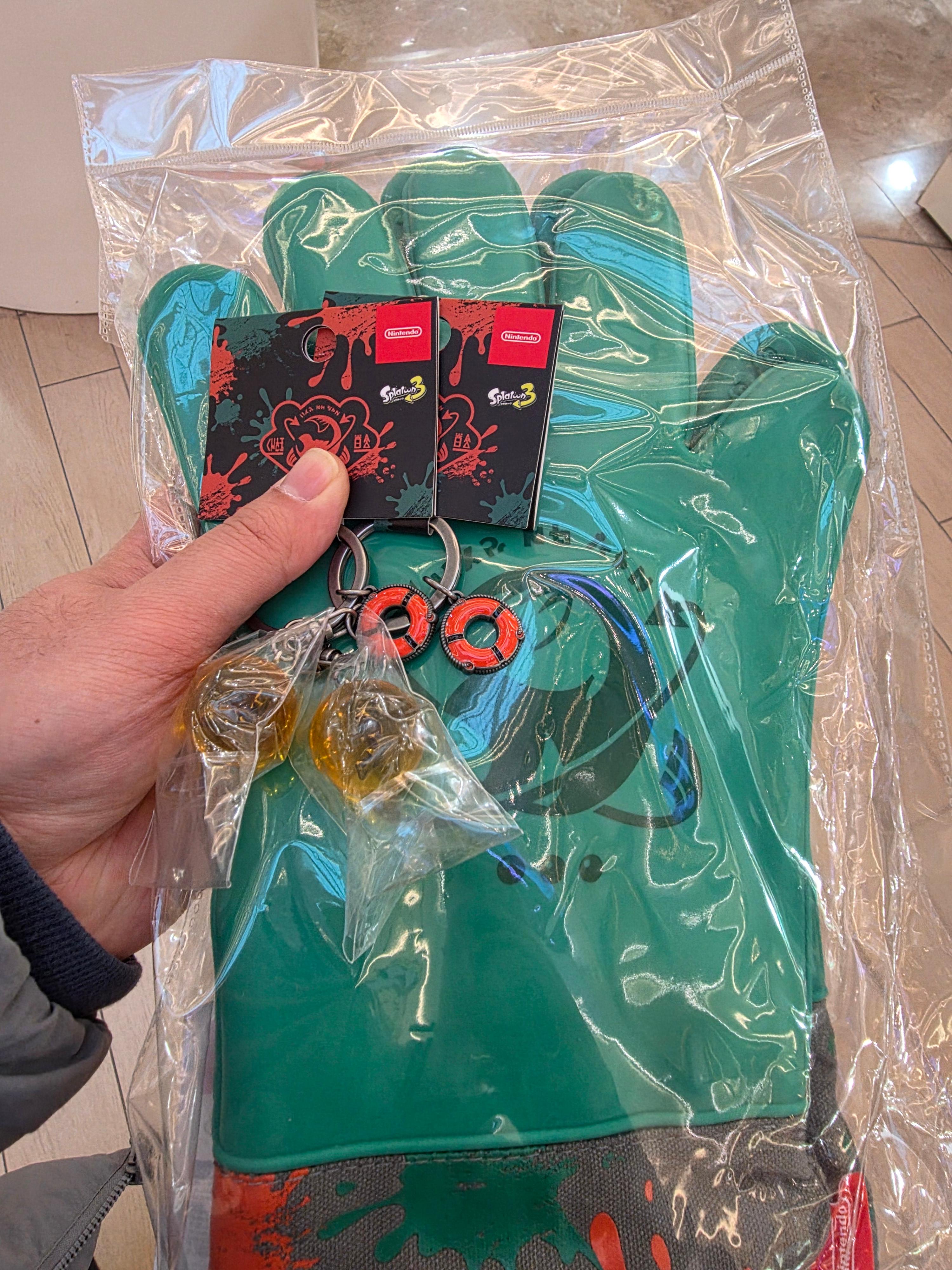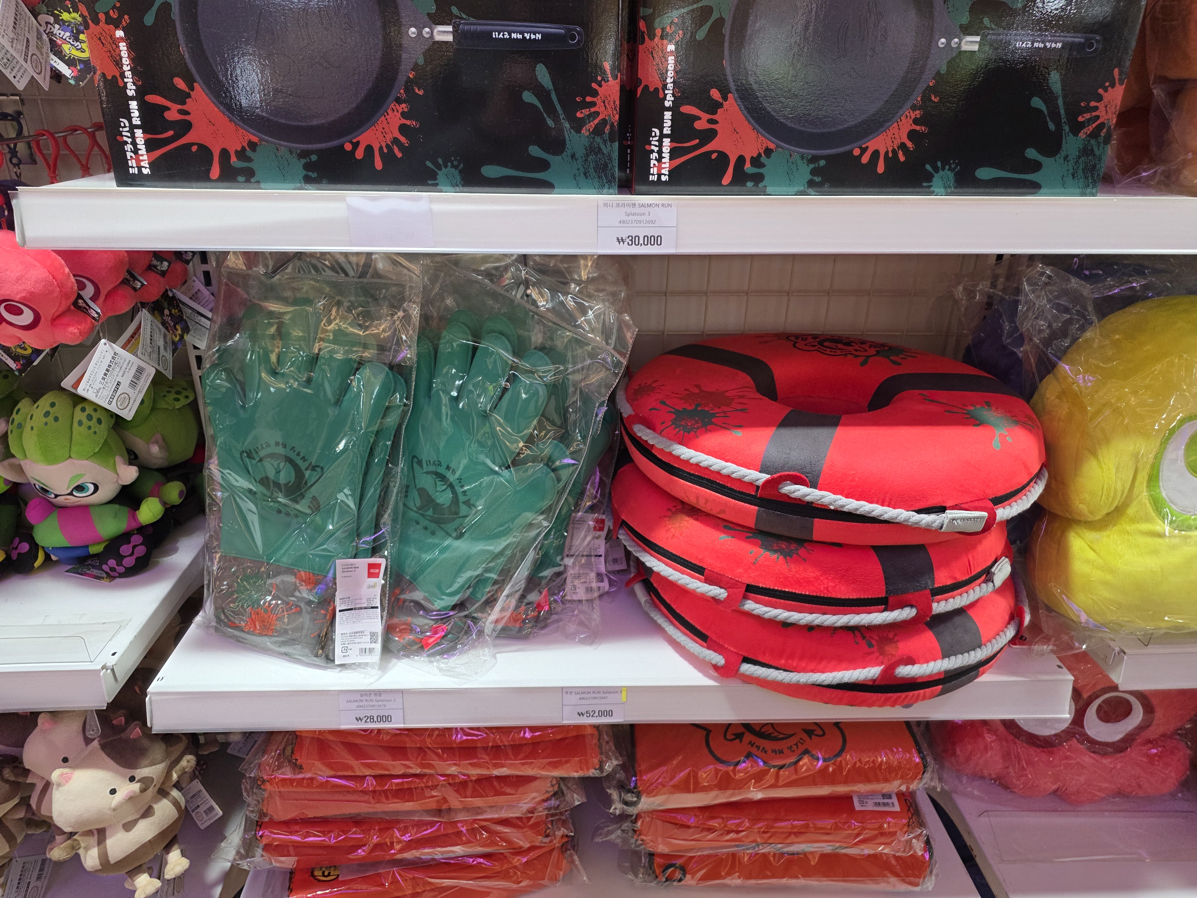 사실 이번 팝업스토어 라인업을 보고서 스플래툰3의 굿즈들이 이번 팝업에서 새로 선보이는 상품들이 꽤 있어 관심을 많이 가지고 있었습니다. 그 중에서 특히 연어런 복장 의상을 원했었는데요. 아무래도 팝업스토어 막바지라 그런지 사이즈가 S와 M 밖에 남지 않았습니다. 언제 다른 사이즈가 입고가 될 지는 장담할 수 없다는 이야기에 그냥 마음을 접었습니다.