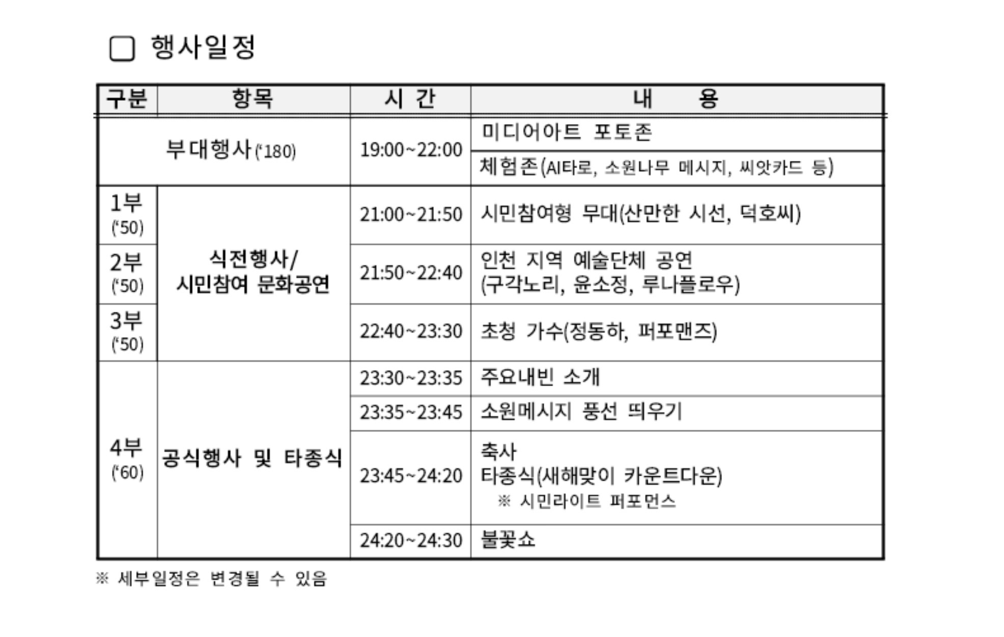 아무튼 이렇게 인천광역시의 공식적인 송년제야 행사 진행 소식에 대해 간단히 정보를 전달했습니다.