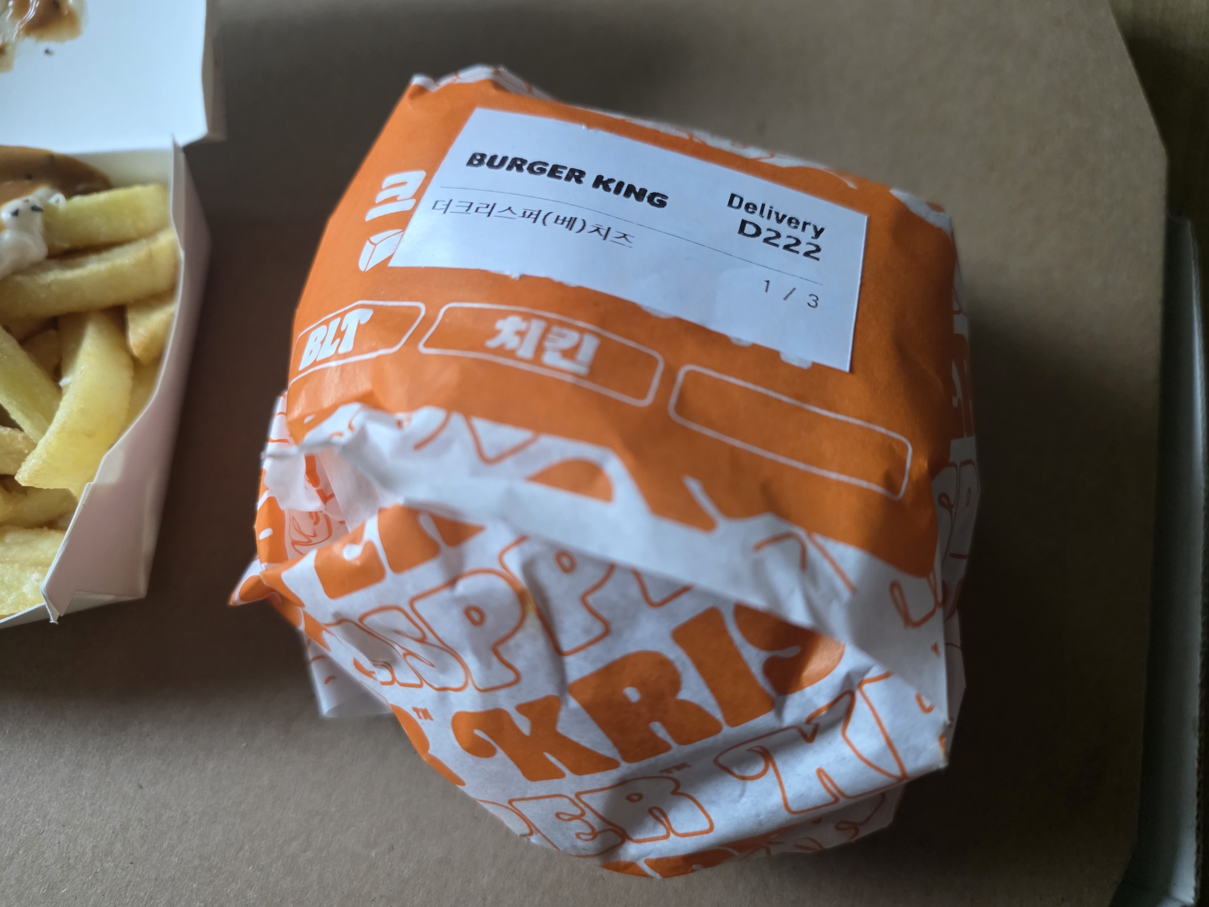 동네 버거킹에서 배달 주문을 했습니다.