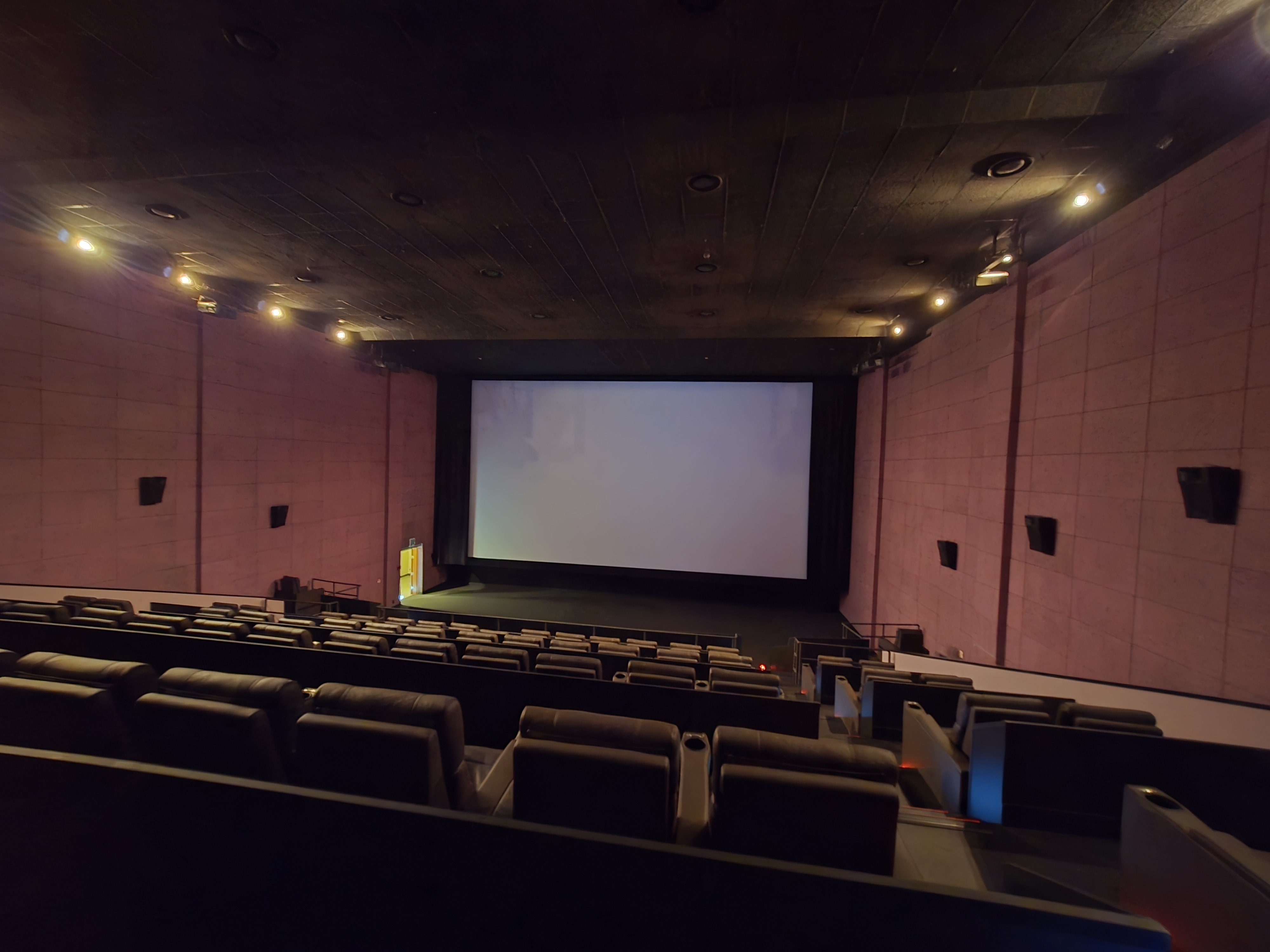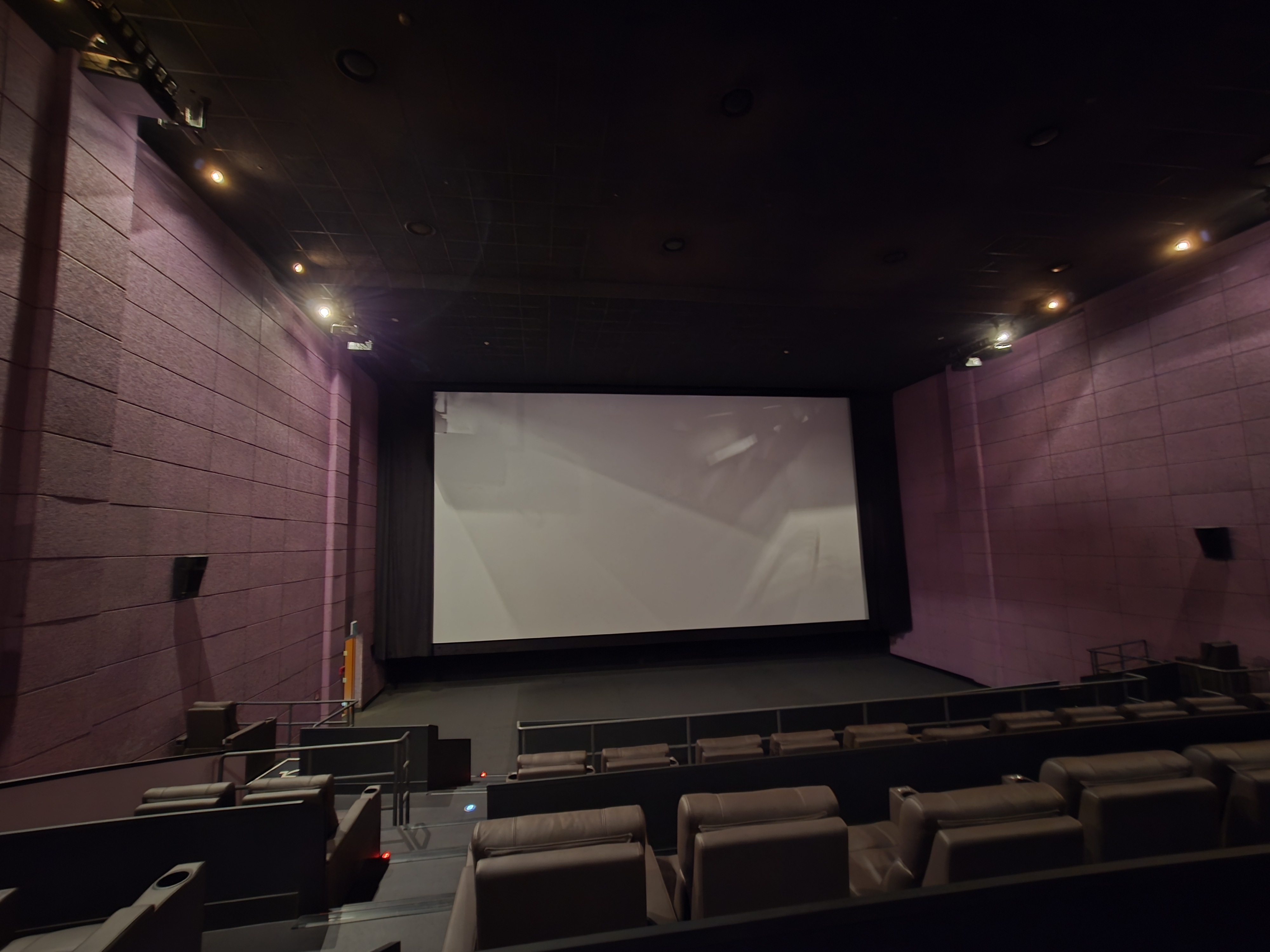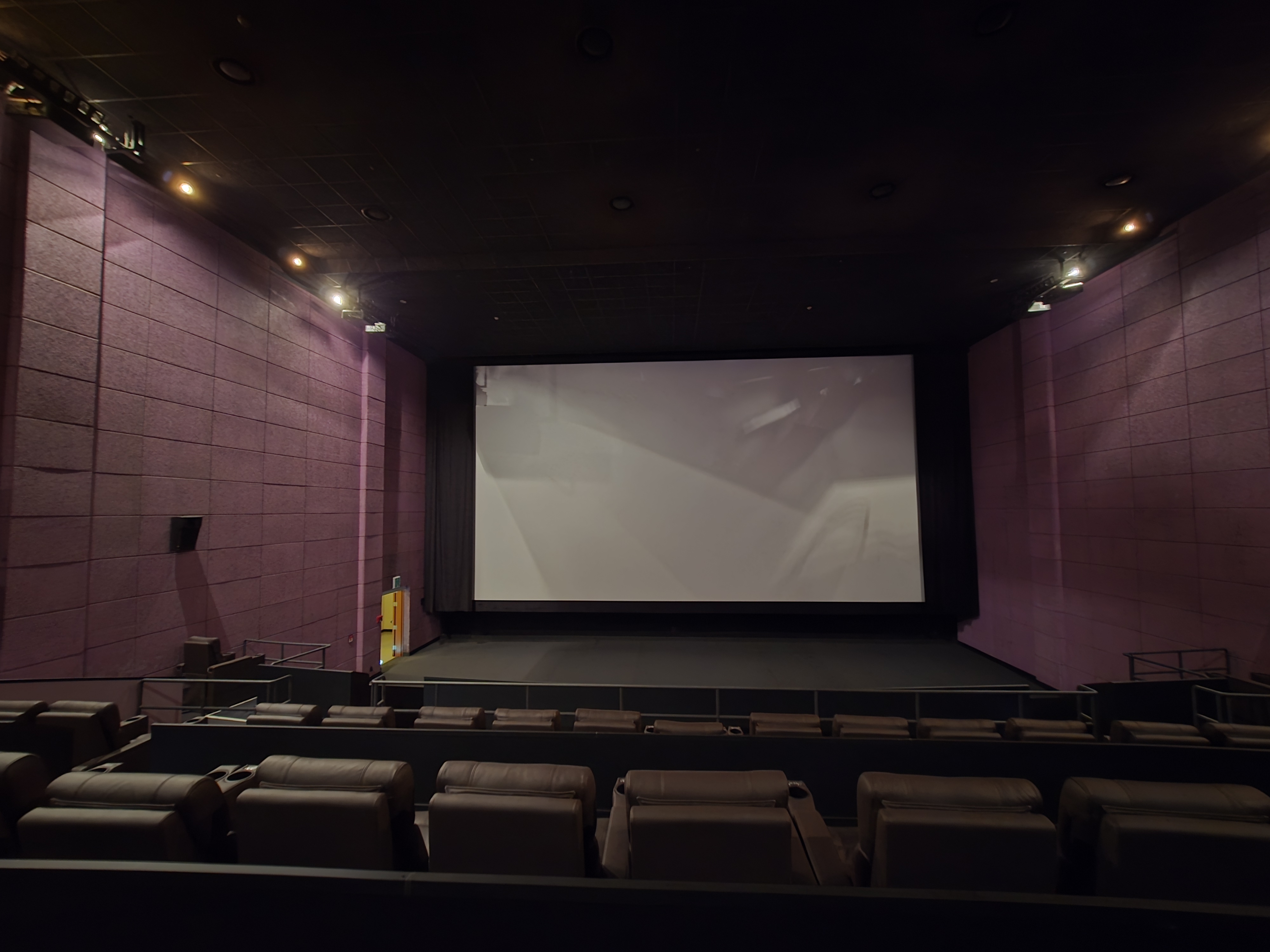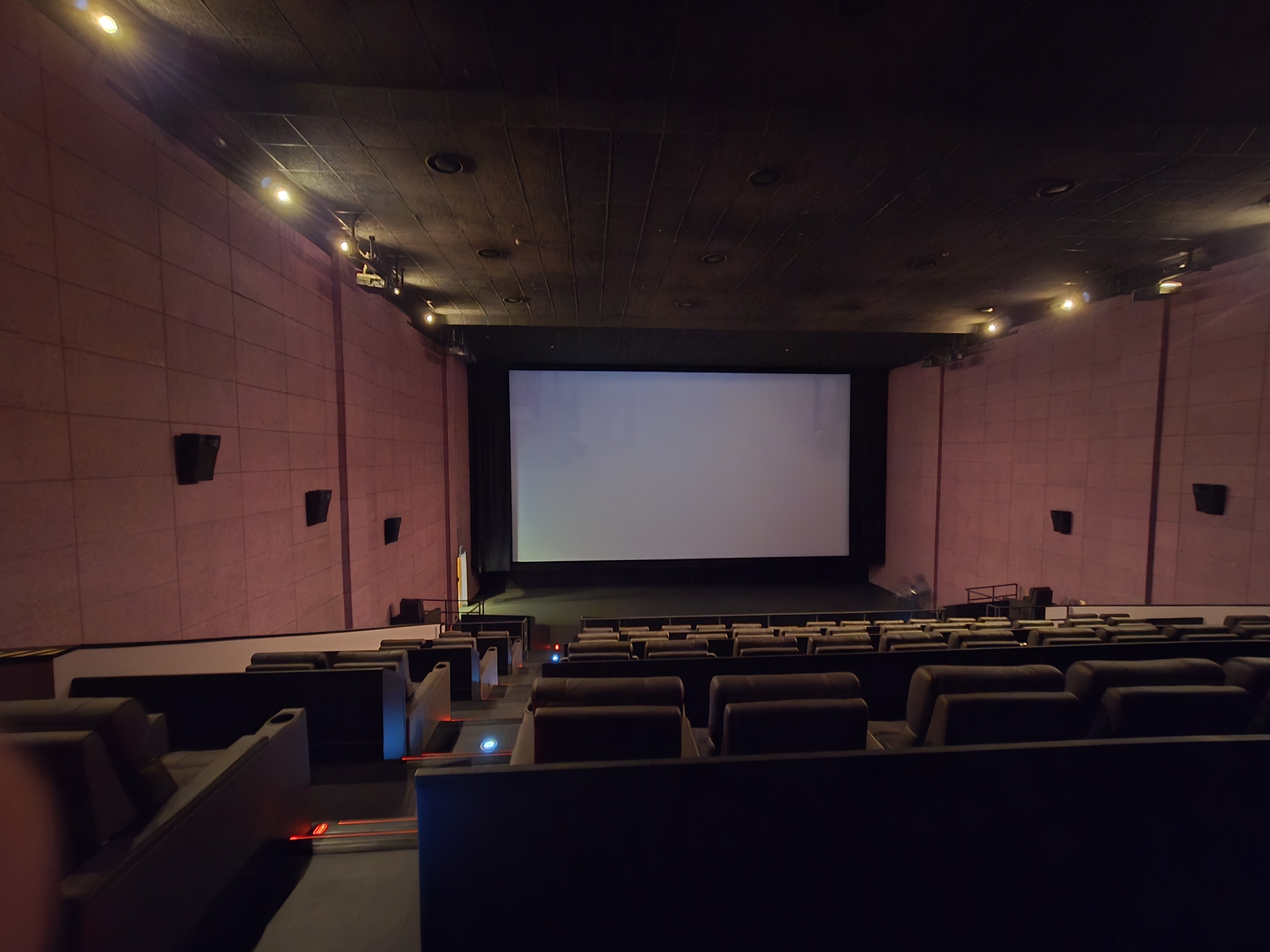 스크린의 경우 시네마스코프 비율의 스크린이 설치가 되어 있으며, 좌우 마스킹 장비가 가동하고 있습니다. 영사기는 레이저 영사기다보니 밝기나 색감 면에서는 준수한 편입니다. 전반적으로 일반관 중에서도 상급 수준이었습니다.