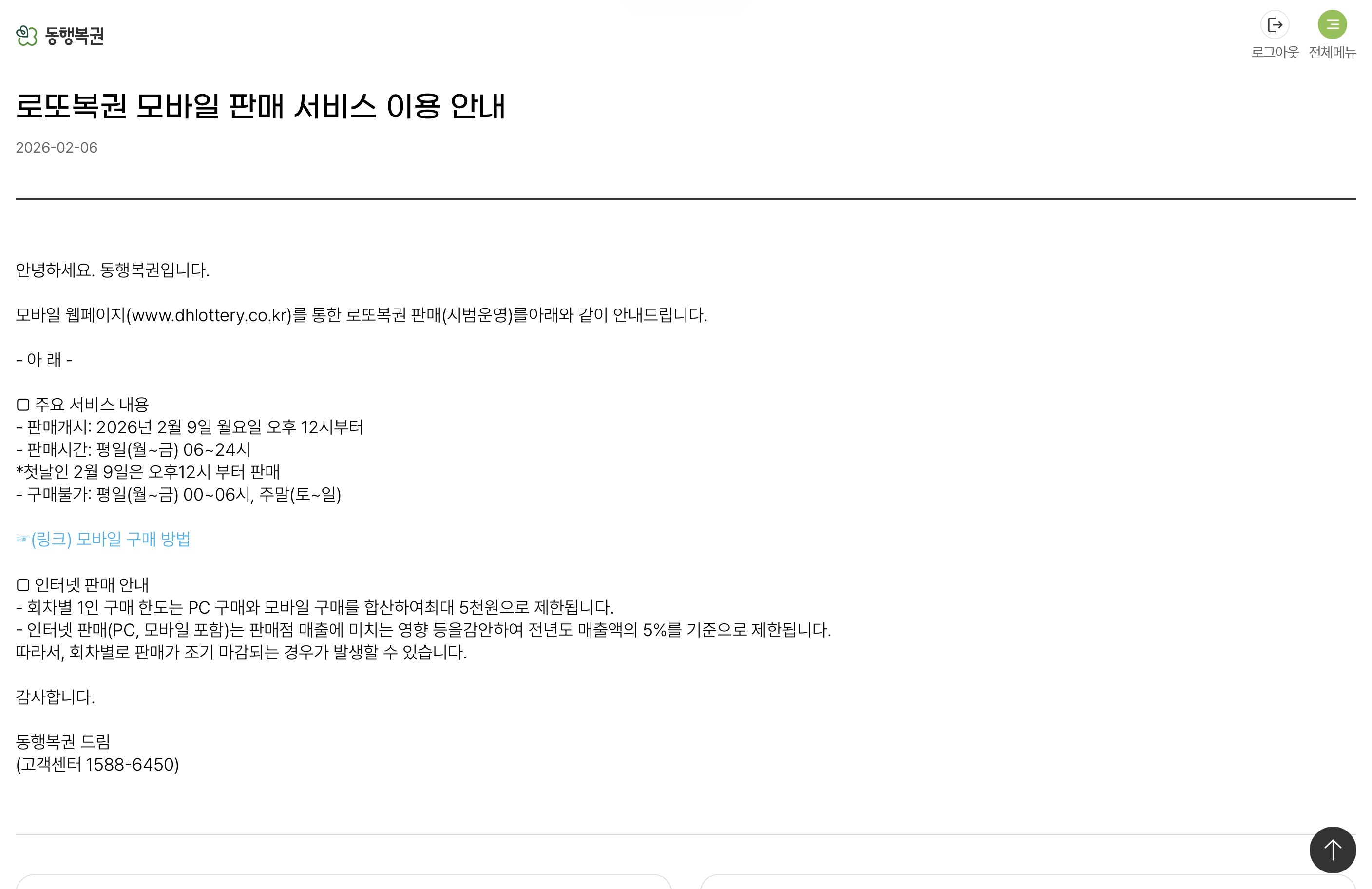 얼마 전 동행복권에서 공지사항으로 이제 로또복권으 모바일 웹페이지를 통해서 구매 할 수 있다는 내용이 발표가 되었습니다.