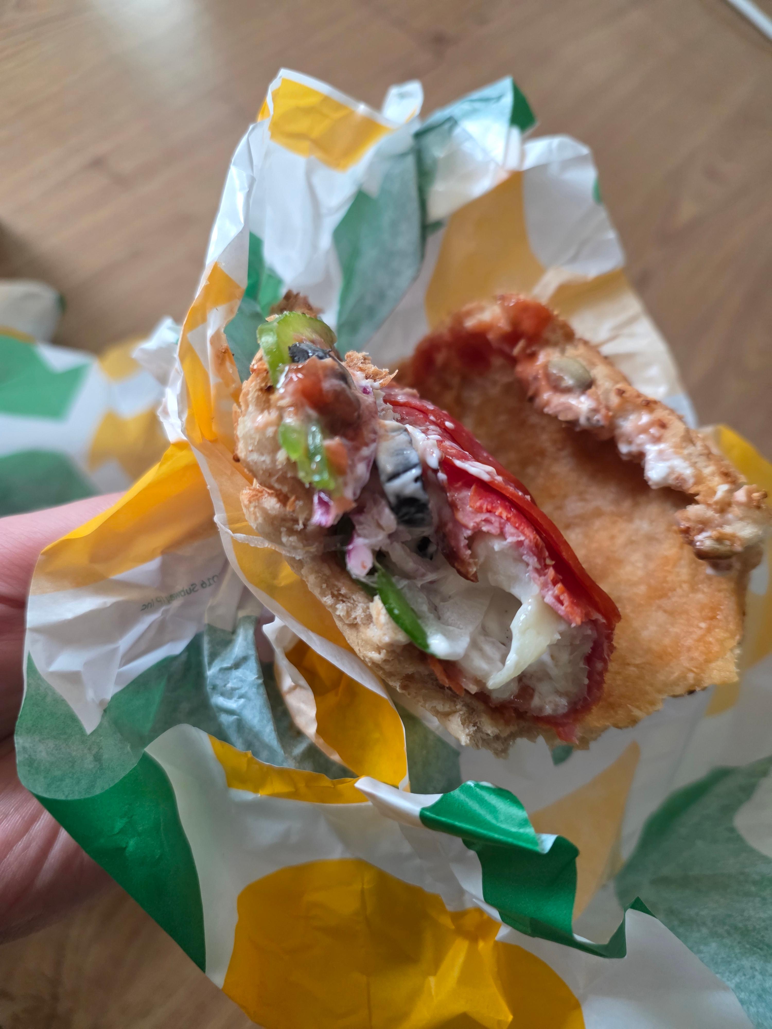 전체적으로 본다면 페퍼로니 피자의 풍미를 많이 살리고 제법 두툼한 빵으로 잘 만든 서브웨이식 샌드위치라고 할 수 있습니다.