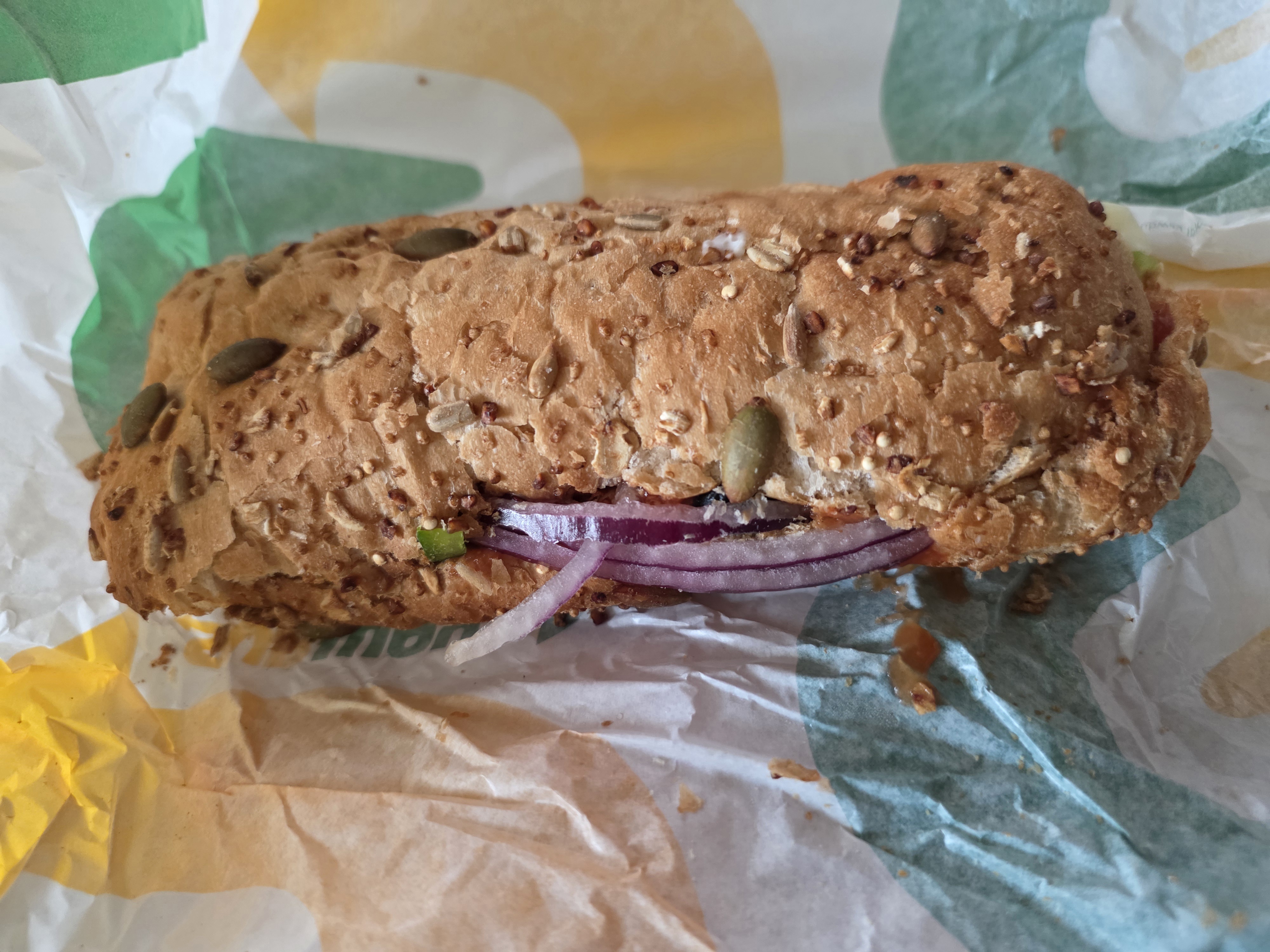그 외에 마요네즈, 살사소스가 전체적으로 풍미를 두텁게 만드는 느낌이고, 그 이외에 같이 들어가 있는 살라미 피망 양파 등의 채소류들이 수분기가 있어 느끼하거나 짠 느낌을 살짝 중화시켜 본질은 그래도 샌드위치라는 것을 상기시켜줍니다.