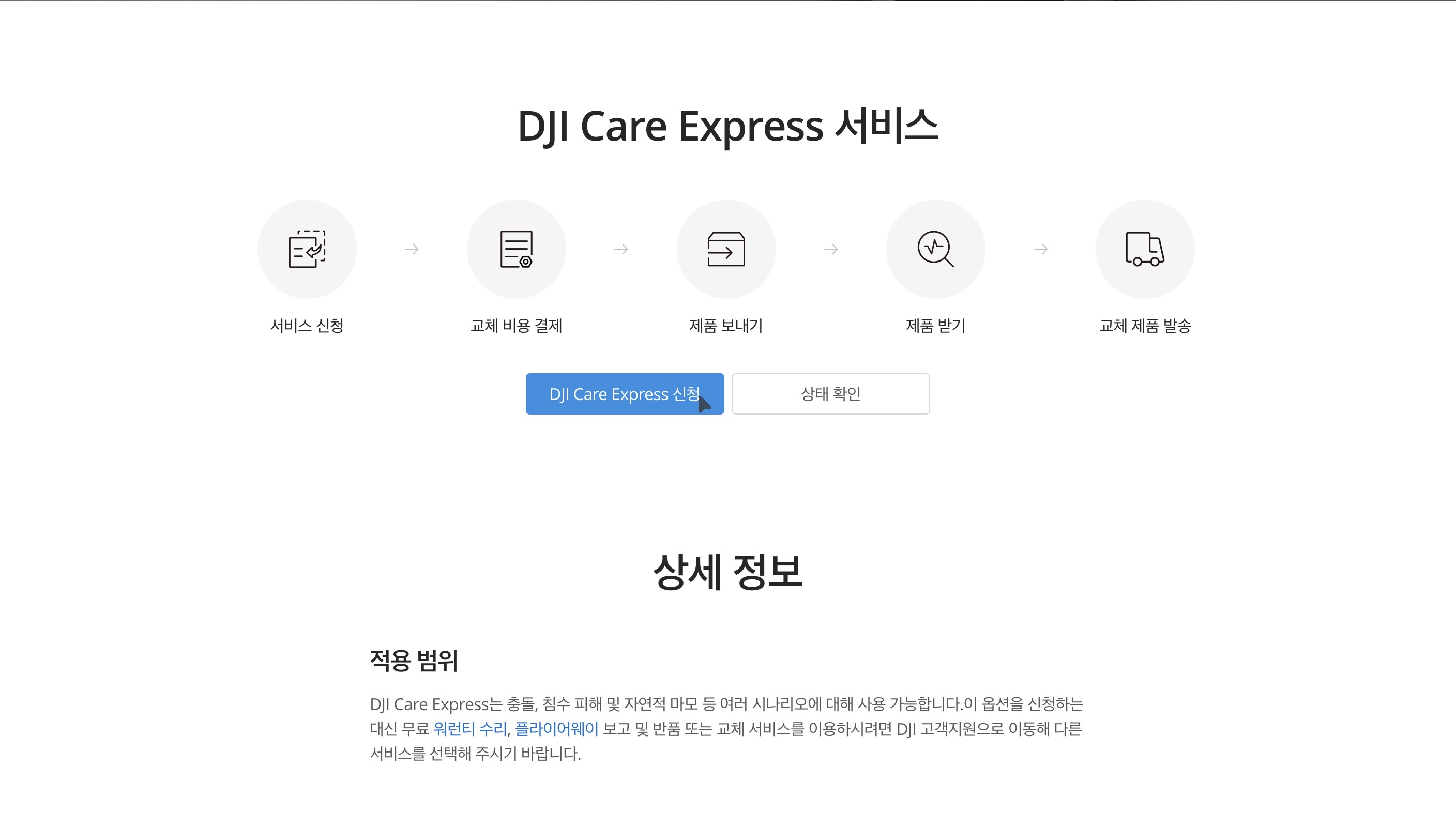 그 다음 DJI 케어 익스프레스 신청 버튼을 눌러줍니다.