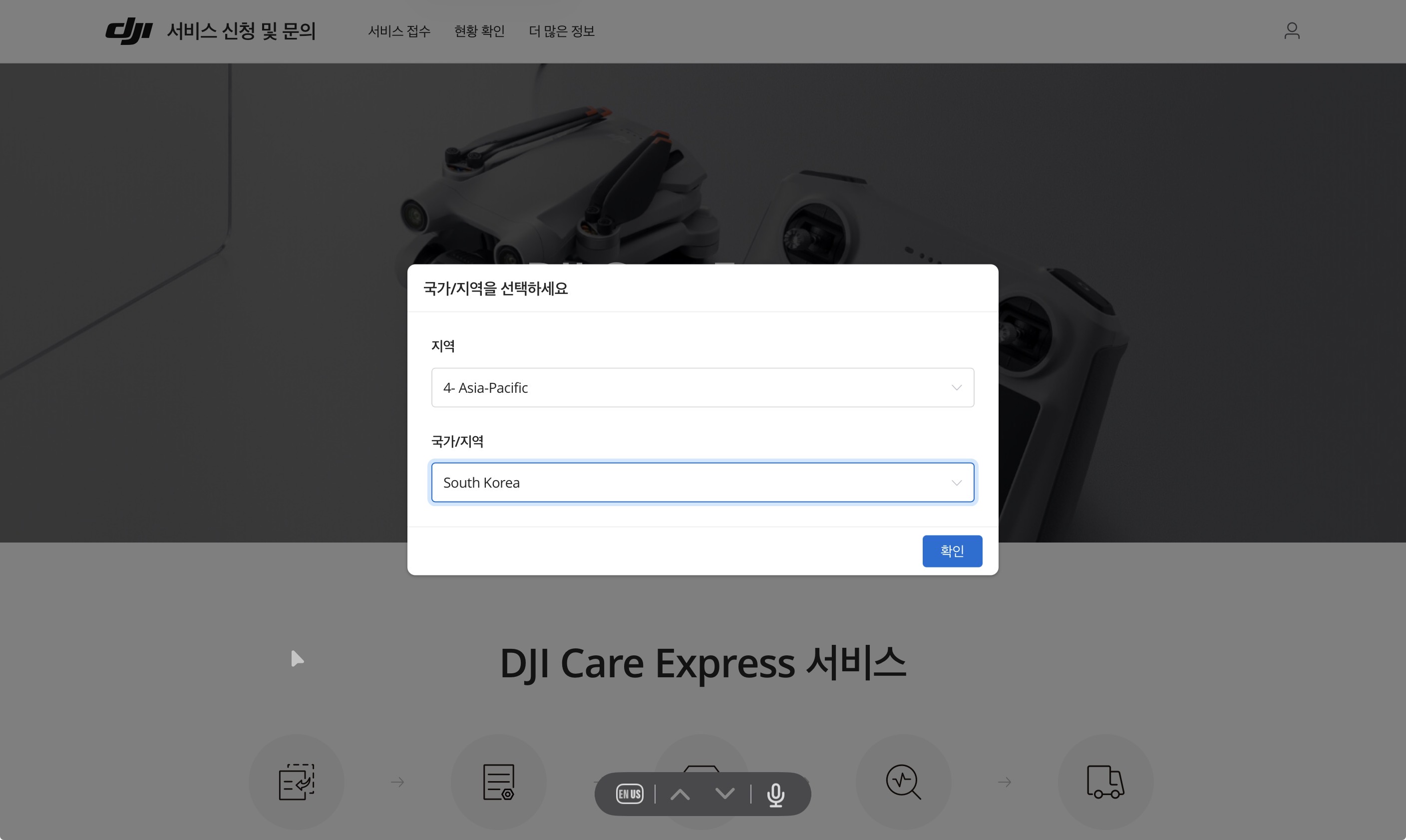 서비스 신청 및 문의 페이지 중간에 있는 DJI CARE EXPRESS를 눌러줍니다.
