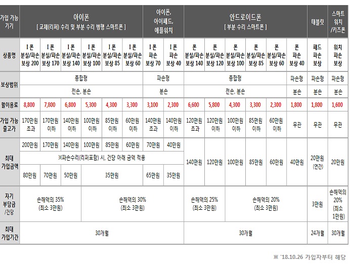 이미지 출처 - 엘지 유플러스 홈페이지 https://www.uplus.co.kr/css/repr/care/ubOrCarewebtonPop2.hpi 전자의 경우는 완전 분실되는 경우에도 보상이 되며, 월 5,800원 납 30개월이었고