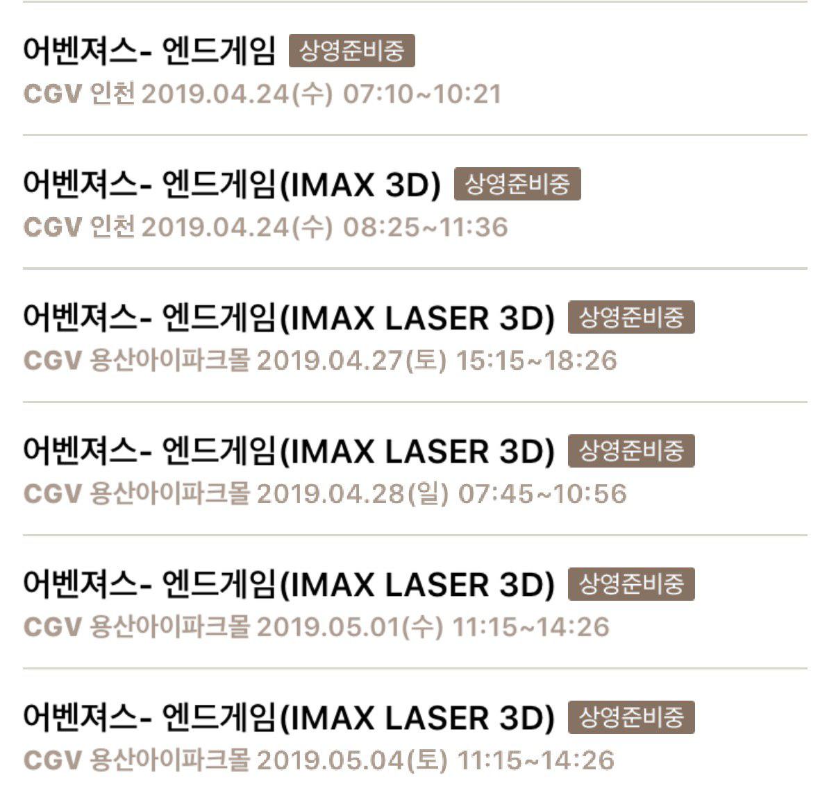 어벤져스 엔드게임 아이맥스 예매 - 1회차는 인천아맥, 용아맥 절반의 성공영화 및 영상물/상영작 포맷 비교 2019. 4. 20. 03:49반응형