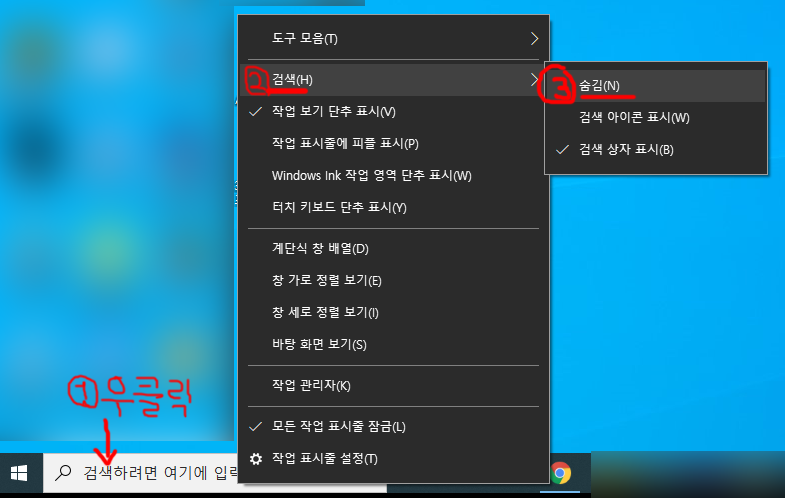Windows 10 작업 표시줄에 검색창 껐다 키는 거 생각보다 간단하죠?