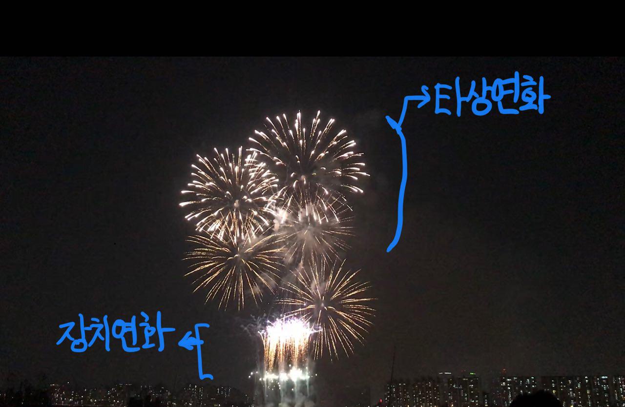 높은 장소에서 크게 터지는 타상연화 이 두 종류의 불꽃이 온전히, 전부 보이는 곳이 좋습니다.