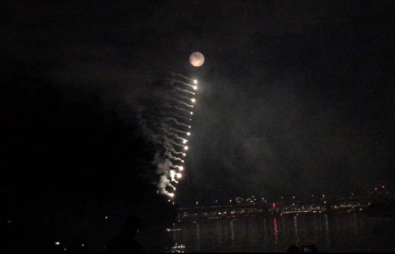 한국팀의 경우 비교적 여의도에 가깝게 바지선을 대고 쏘아올립니다.
