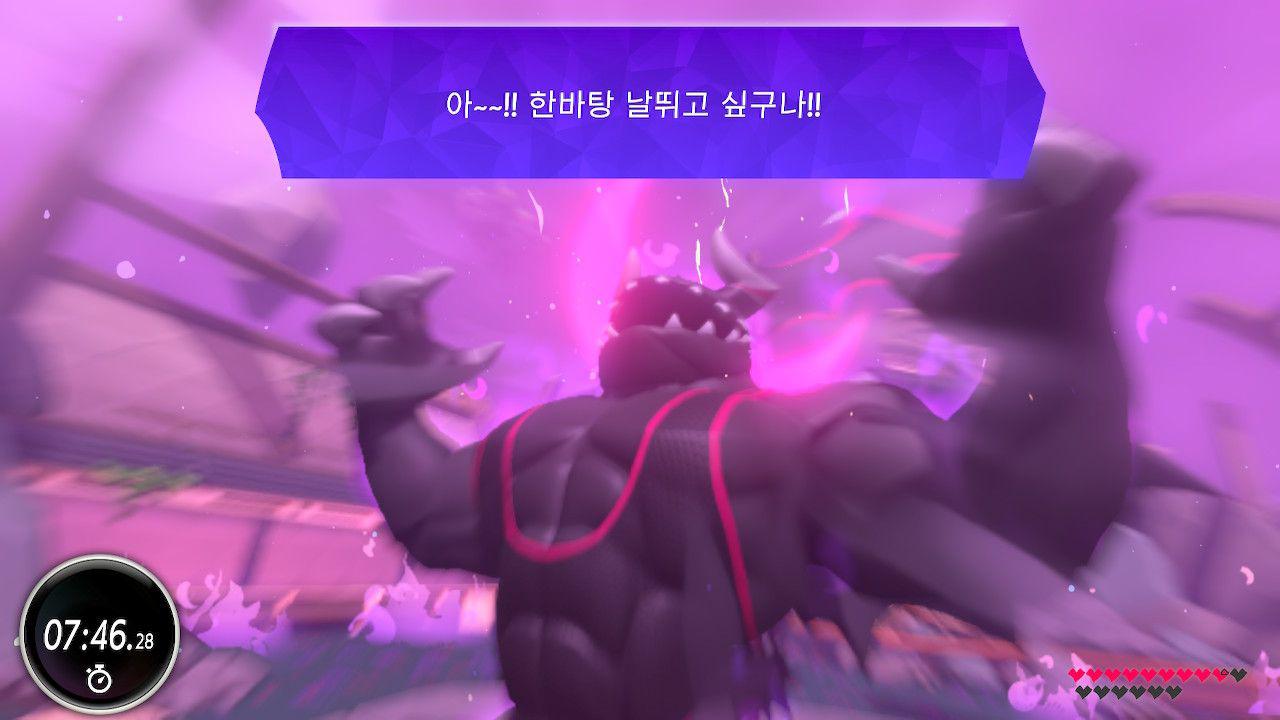 그리고 두 번째는 젤다 야숨처럼 각성한 상태인데 체력 5줄에 첫 페이즈보다 훨씬 센 상태로 나타납니다.