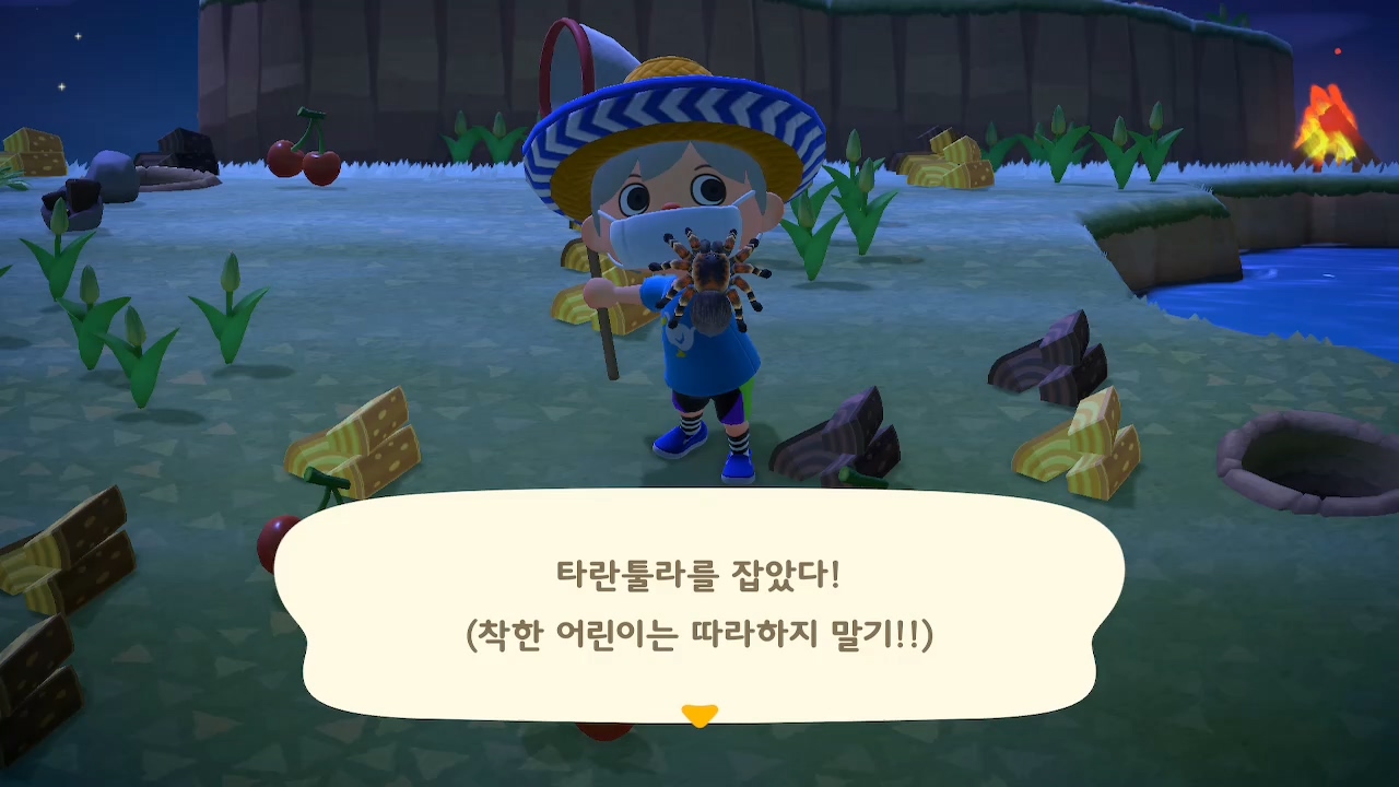 이번 모동숲을 플레이하다 보면 밤에 검고 붉은 색의 ‘타란튤라’가 나타납니다.