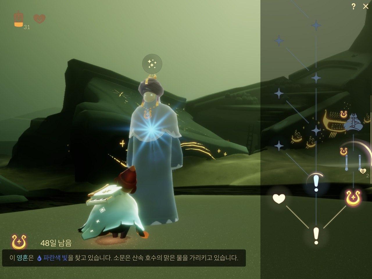 빛이 나는 두 번째 느낌표를 터치하면 파란색 빛을 찾고 있다는 문구가 뜹니다.