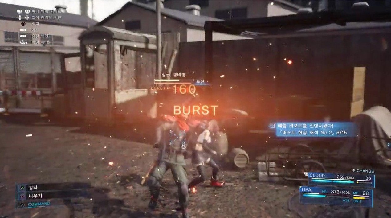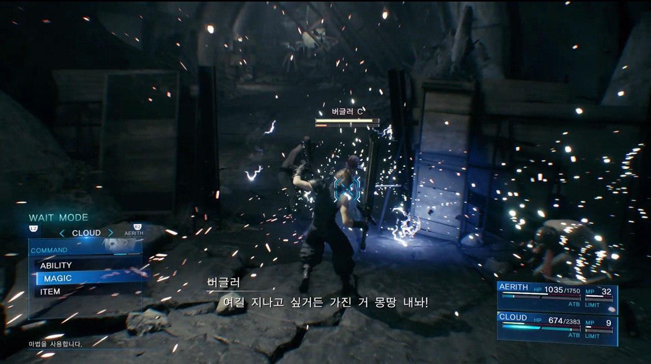 카메라 시점 외에도 캐릭터와 적 사이에 사물이 있으면 뚫지 못합니다. 전투시 고려해야 할 요소 중 하나입니다. 이전 데모판 후기에서도 언급했지만 카메라 시점이 매우 불편합니다. 조준이 매우 불편합니다. 보통의 액션 게임의 경우 적을 조준하면 카메라 시점이 조준된 적을 화면의 가운데로 움직이지만 파판7 리메이크는 그냥 조준 표시만 생깁니다. 게다가 조준 표시는 작고, 심지어 아이템 또는 마법 적용 대상 표시와 구분이 잘 안됩니다. 워낙 전투가 빈틈없이 바쁘게 돌아가는데 조준이 정상적으로 되었는지 수동으로 시점을 움직이면서 확인해줘야 합니다.