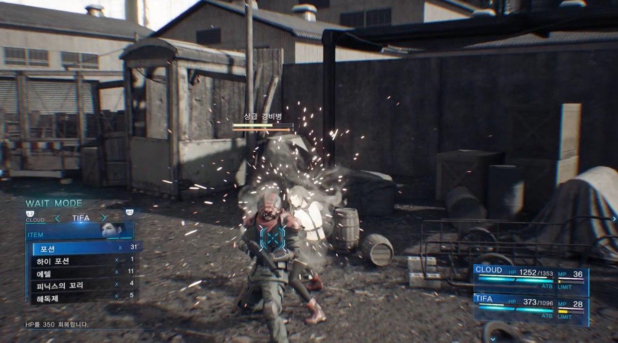 그리고 조준된 적이 화면에서 넘어가면 조준이 풀리는 경우가 종종 있습니다. 플레이어는 수동으로 조준한 적을 계속 화면 안에 들어오도록 시점을 움직여줘야 합니다. 근거리에서 전투를 하는 클라우드나 티파는 적을 향해 움직이기 때문에 상대적으로 시점에 대한 곤란함은 적지만, 원거리 공격을 하는 에어리스나 바레트의 경우 굉장히 전투가 힘듭니다.