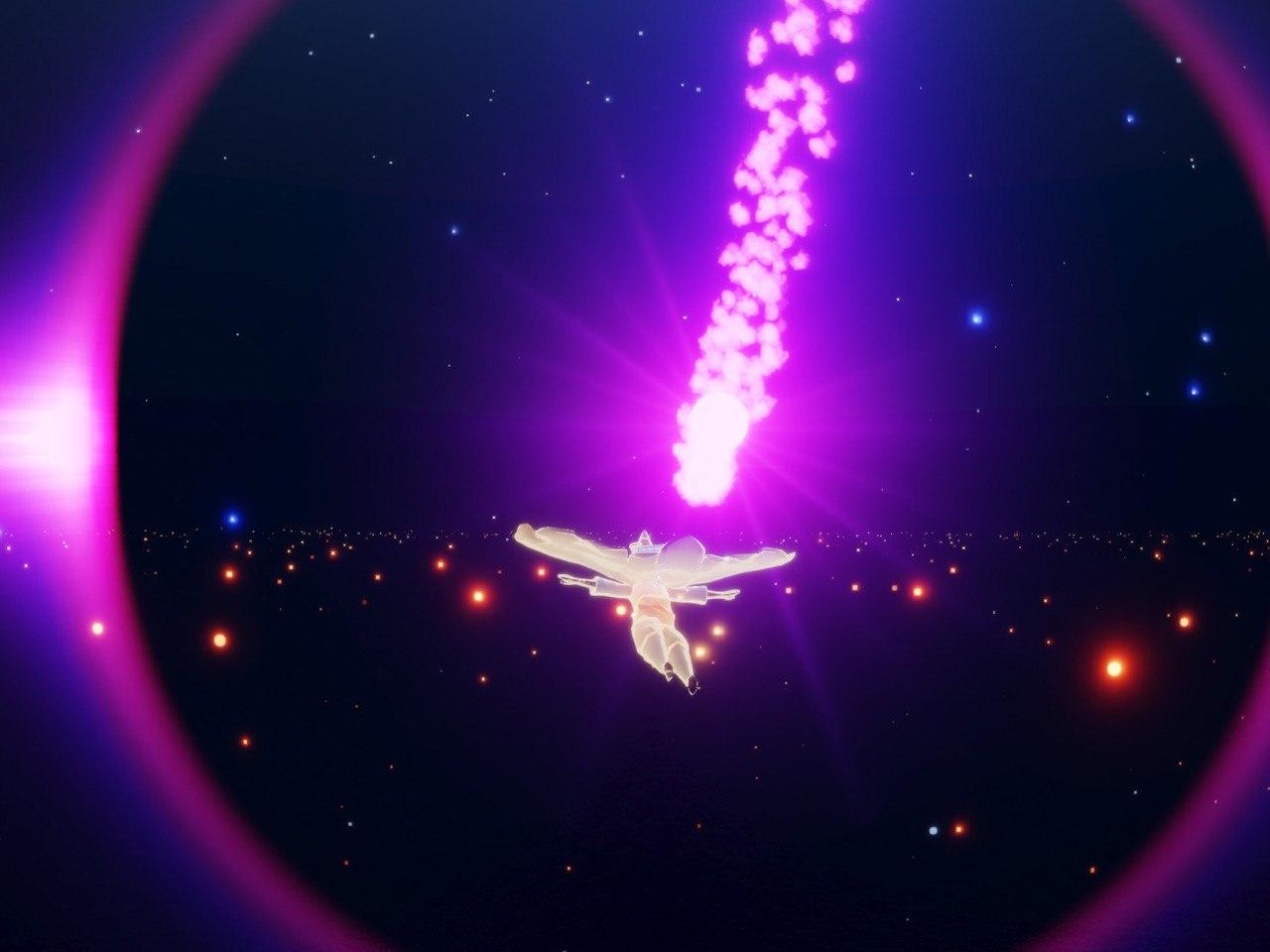 보라색 빛이 정말 자유롭게 날아다닙니다.