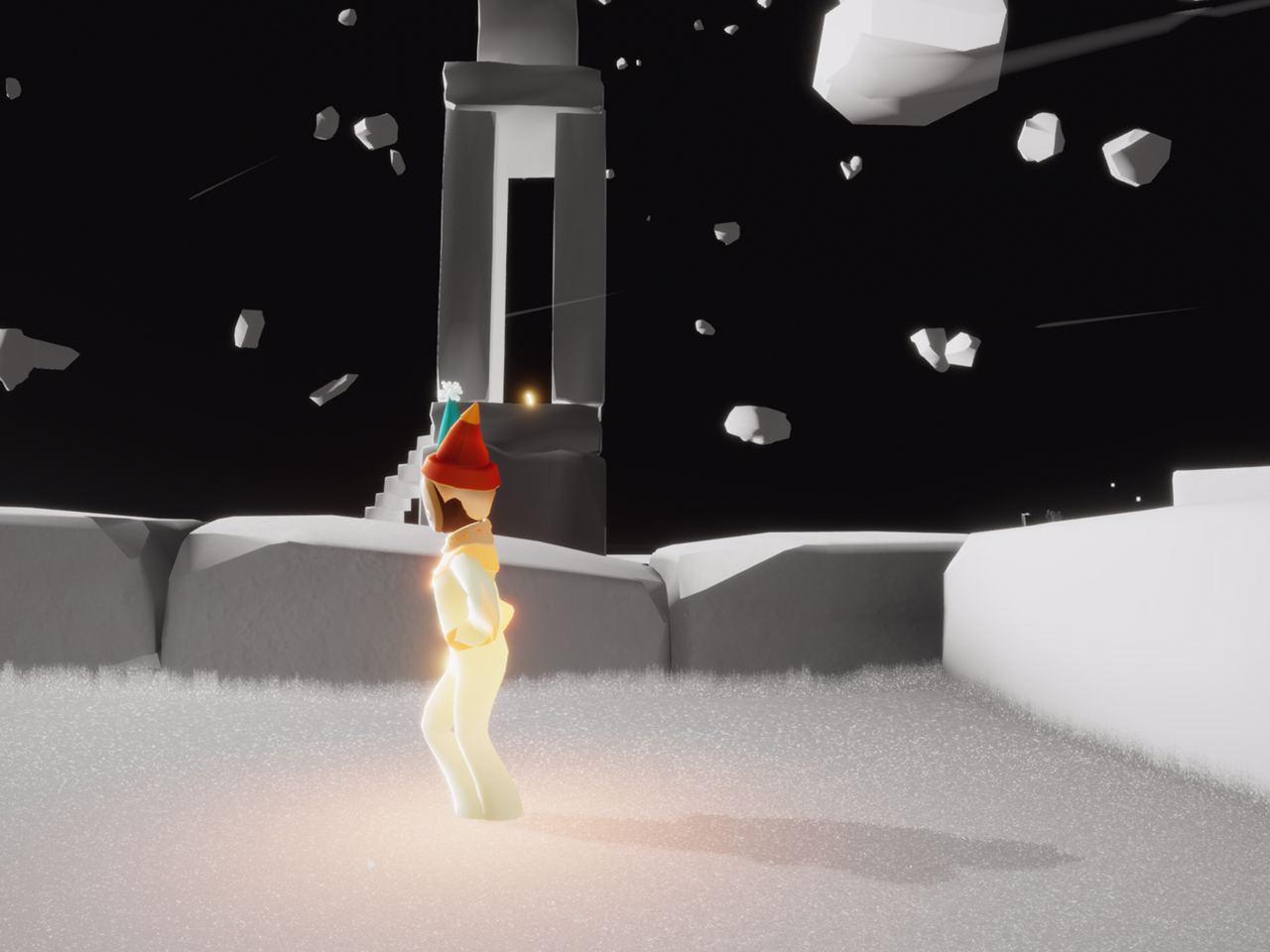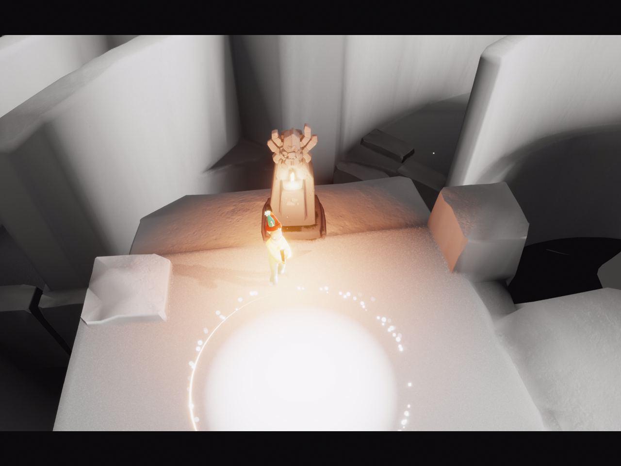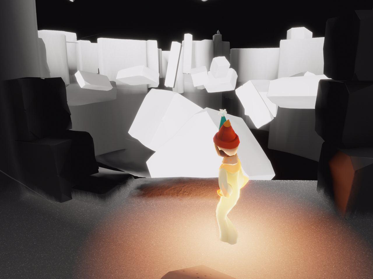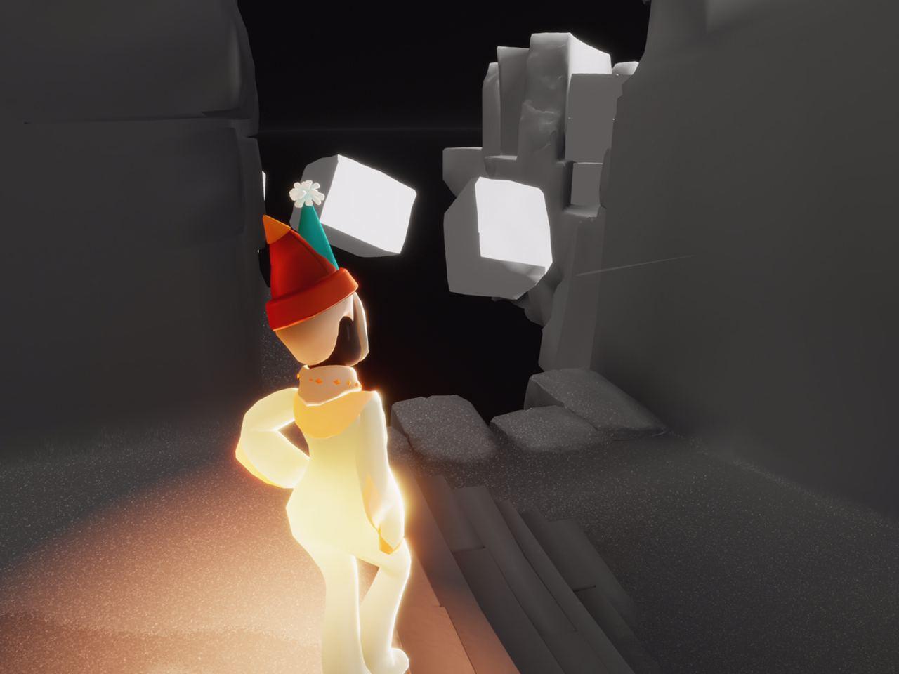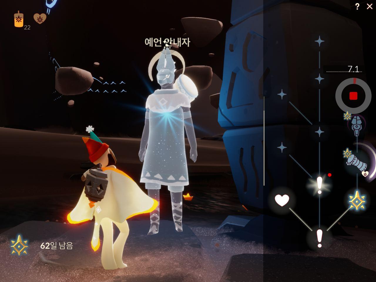 이렇듯 바로 옆에 사람이 있으면 다음 돌로 점프해서 넘어가기 어렵고 바로 아래로 떨어집니다. 떨어지게 되면 주변 활성화된 직전의 체크포인트로 부활합니다. 이제 마지막 구간을 통과하게 되면 바로 땅의 시련 마지막 목적지에 도착하게 됩니다.