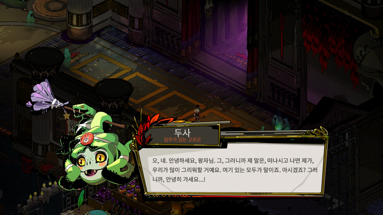 이 게임에서 귀여움을 담당하는 두사입니다. 이렇게 다양한 요소들로 게임 하데스에 대한 이야기를 해봤습니다.