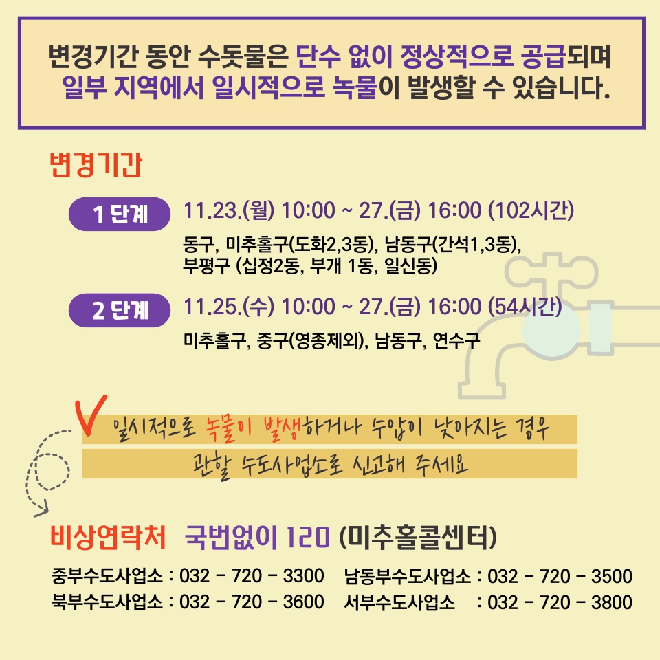 중부수도사업소 : 032-720-3300 / 남동부 수도사업소 : 032-720-3500 /