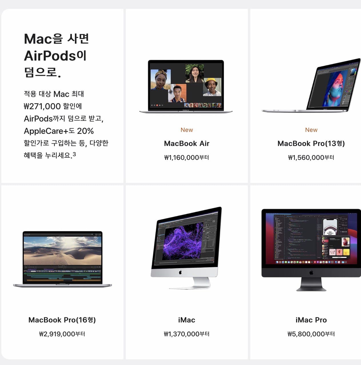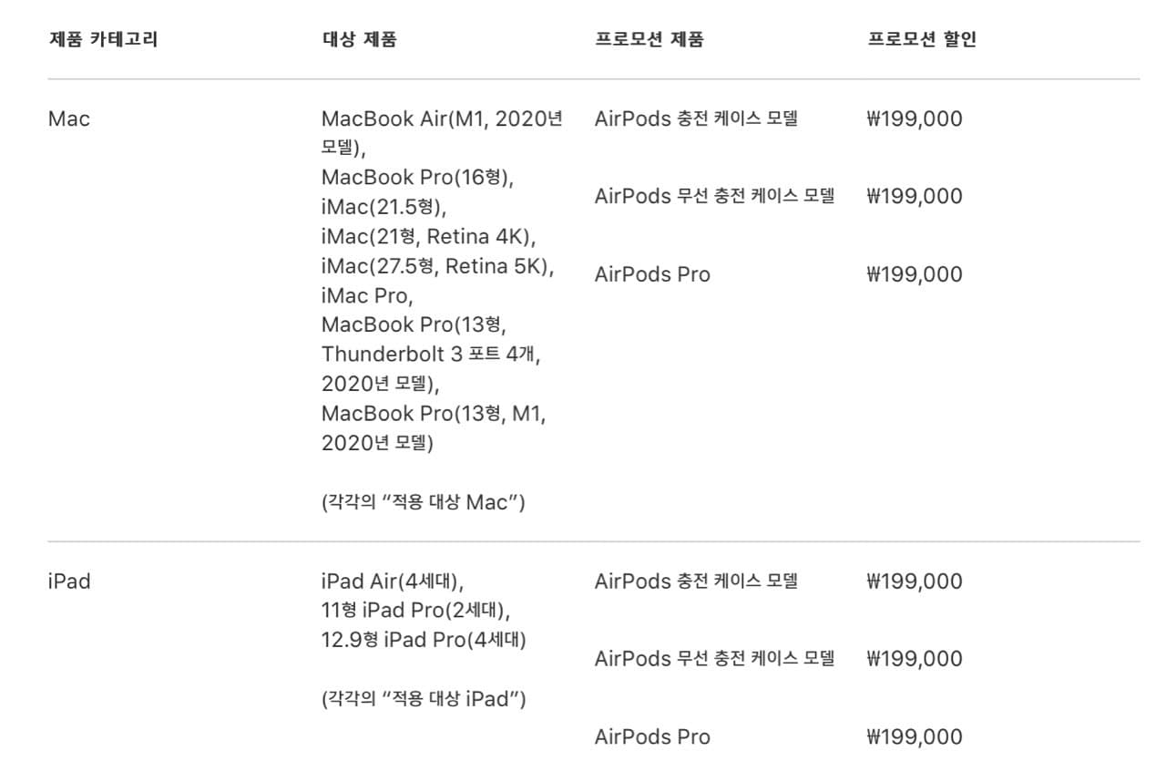 해당되는 맥과 아이패드를 구매하면 에어팟을 증정하고