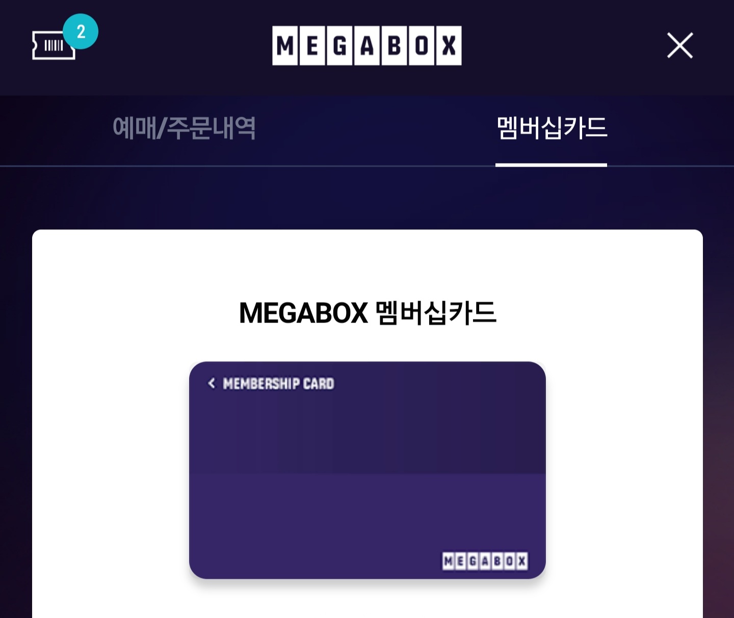 메가박스 앱은 정말 살짝만 스마트폰을 움직여도 바로 멤버십 카드 창이 뜨더군요.