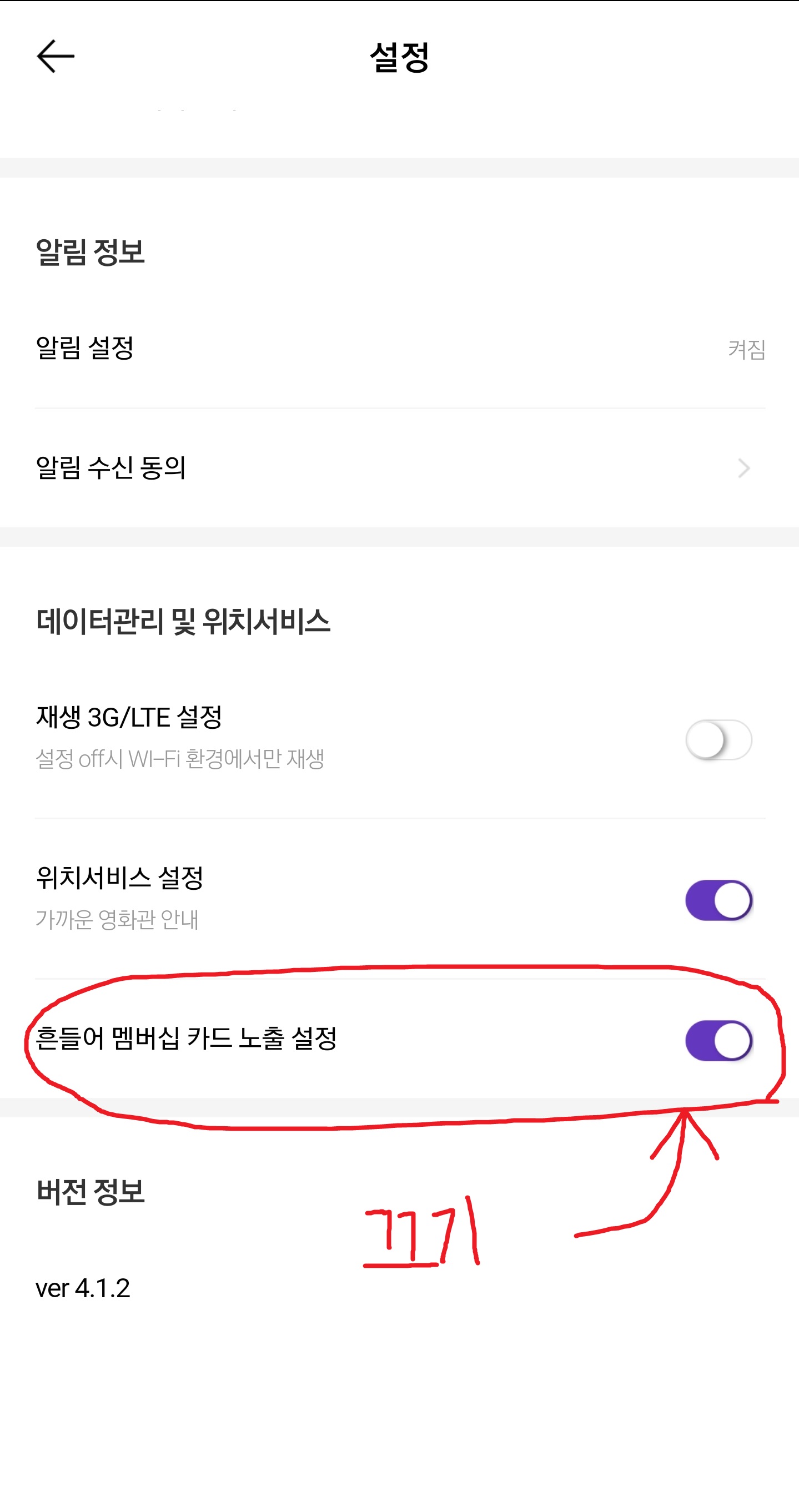 이러면 메가박스 앱 실행시 흔들거나, 조금만 움직여도 멤버십 카드 창이 뜨지 않습니다.