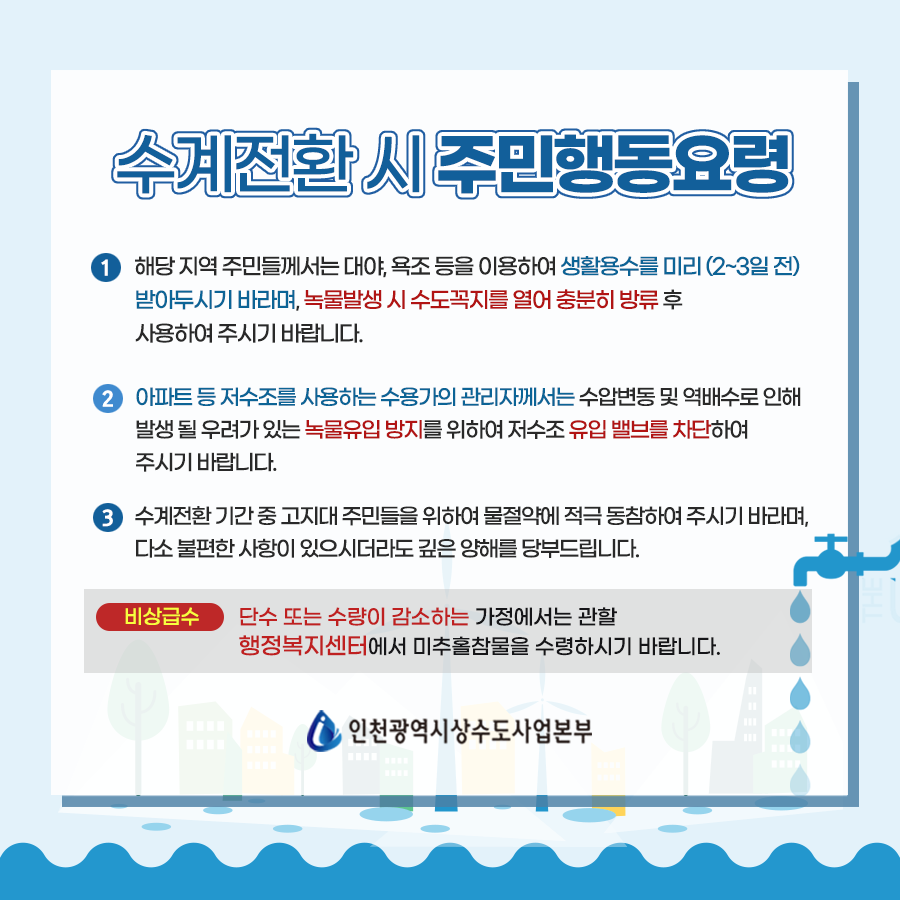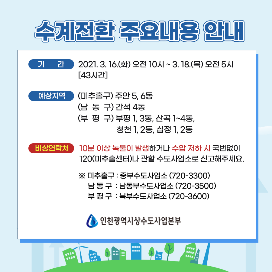 아무쪼록 이번 부평정수장 수계전환 기간 동안에
