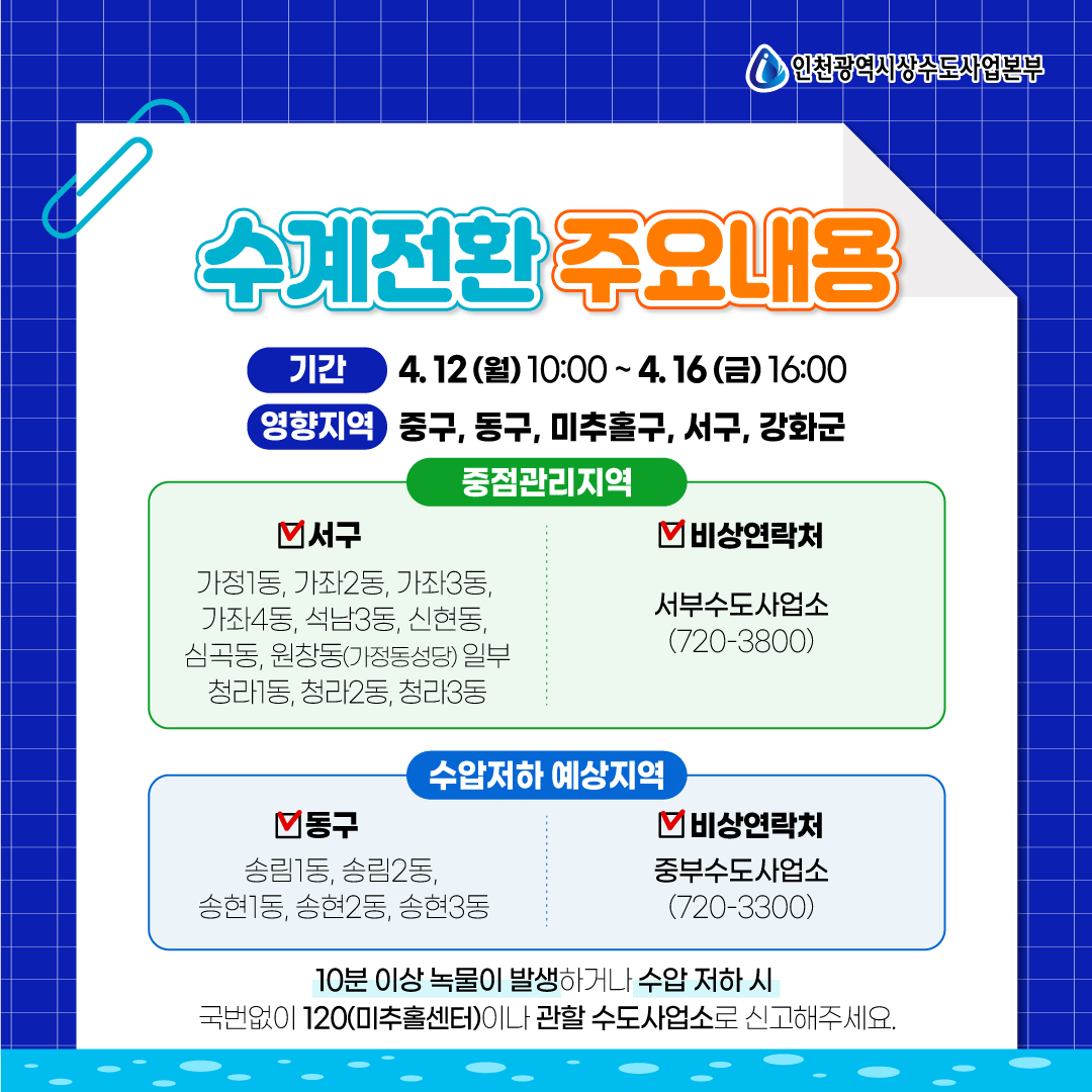 안녕하세요, 이번 글은 인천시 상수도 수계전환 관련 글입니다.