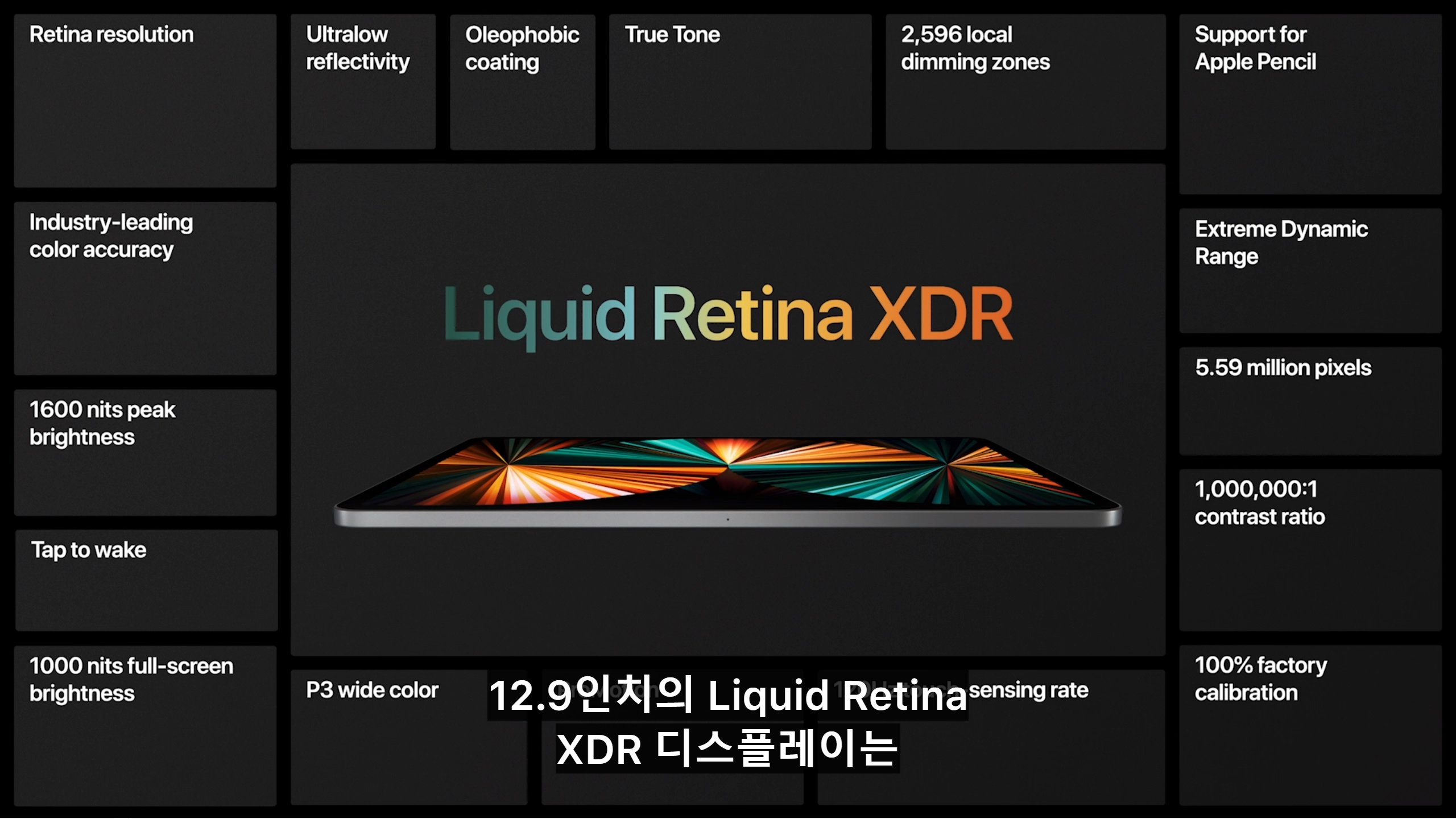 -12.9인치 모델에만 miniLED를 사용한 리퀴드 레티나 XDR 디스플레이 장착