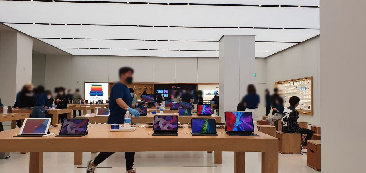 여의도 애플스토어는 IFC몰 지하 1층, L1층에 있으며