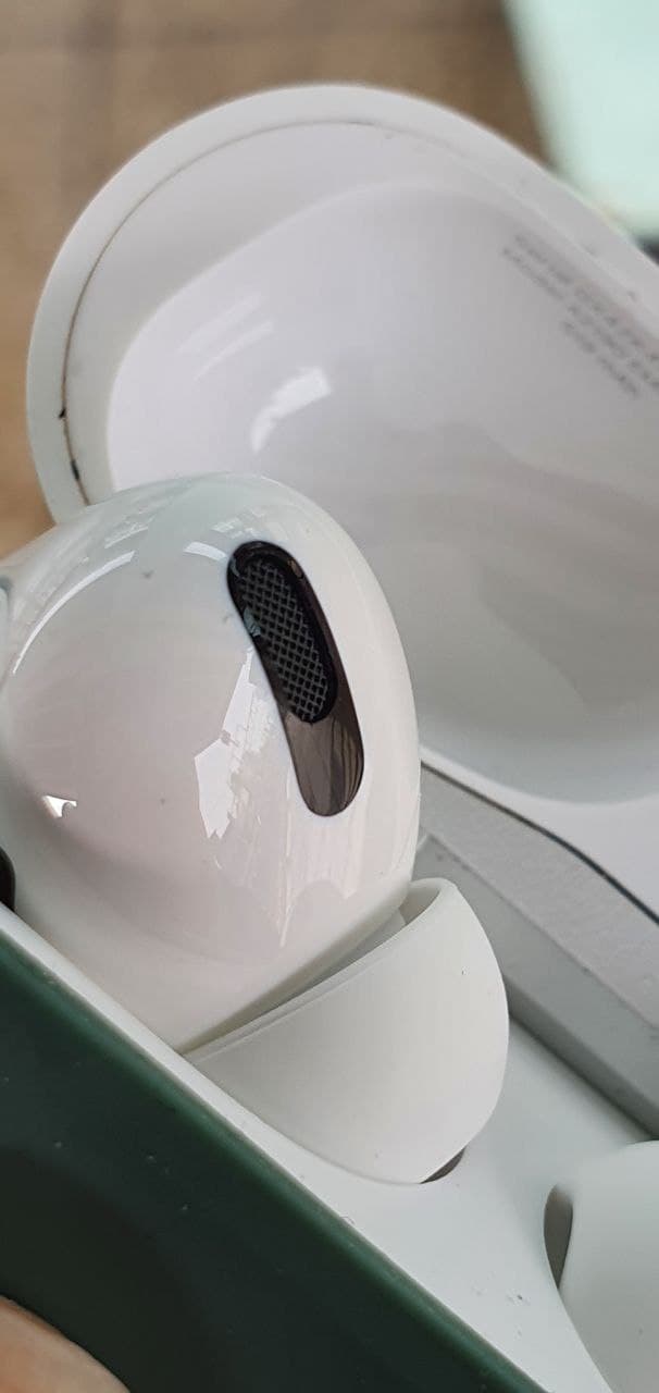 리콜 받기 전 그동안 사용하고 있던 에어팟 프로, 측면의 구멍의 깊이가 상대적으로 얕은 편입니다.