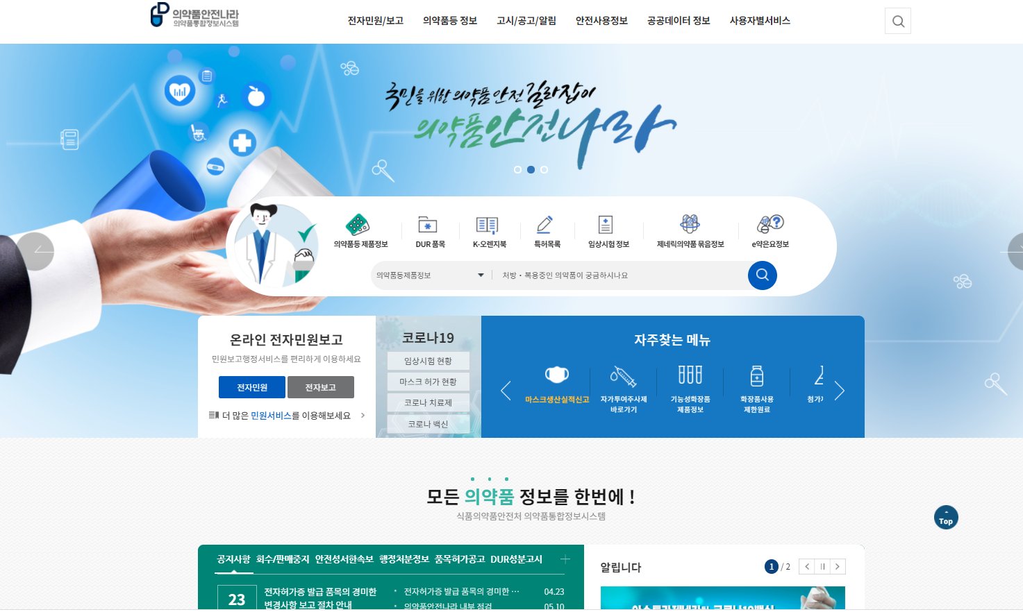 의약품안전나라 홈페이지 메인화면 1. 먼저 의약품안전나라 홈페이지로 접속합니다.