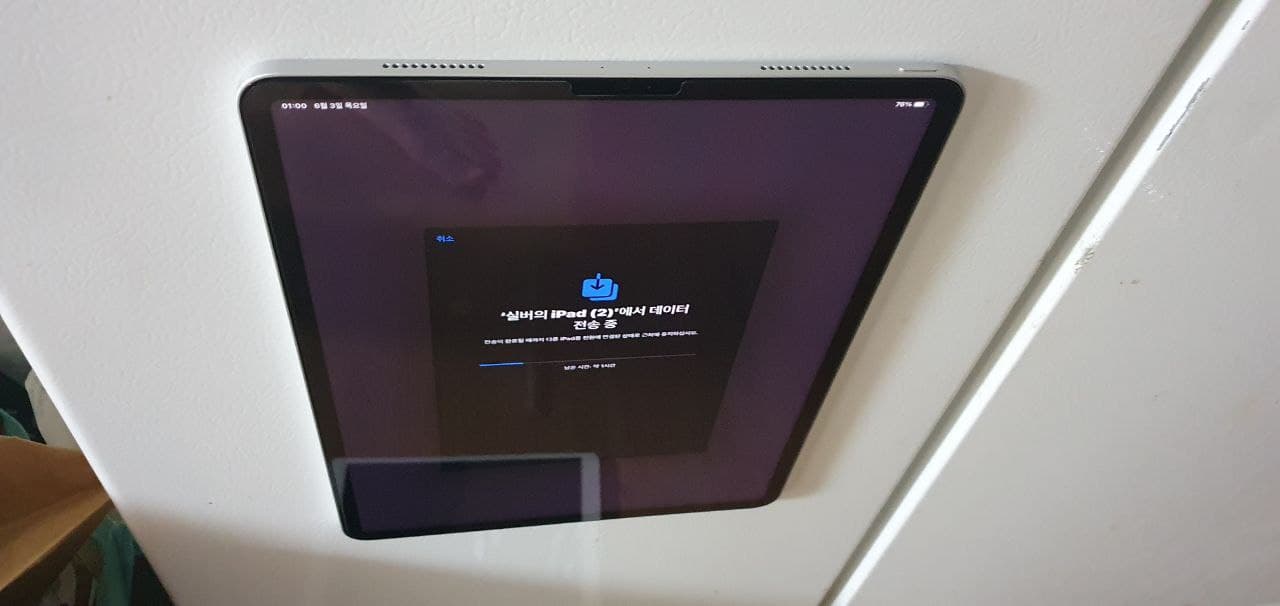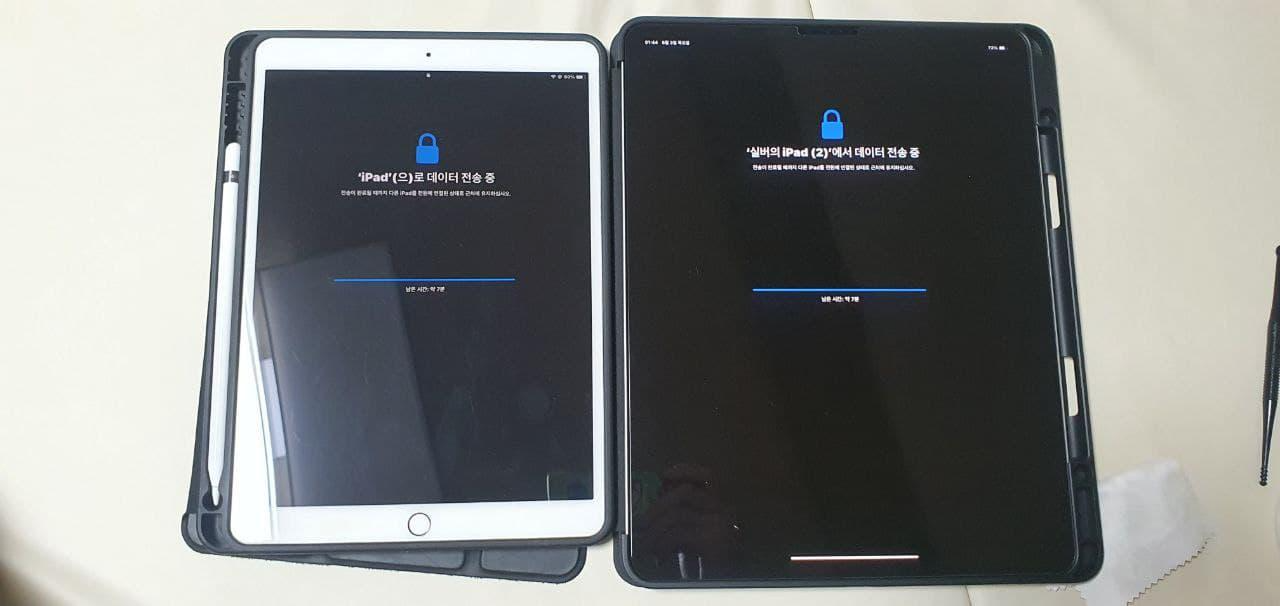 데이터 이전이 끝나고 홈화면. 확실히 크기 차이가 엄청납니다. 전원을 켜고 설정을 하는데 요즘엔 기존 아이패드에서 데이터를 받는게 정말 간단해졌습니다.