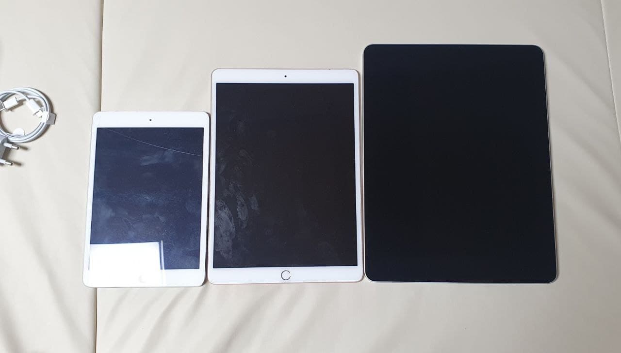 그리고 마지막으로 제가 그동안 사용했던 아이패드들을 나란히 놓고 비교해봤습니다.