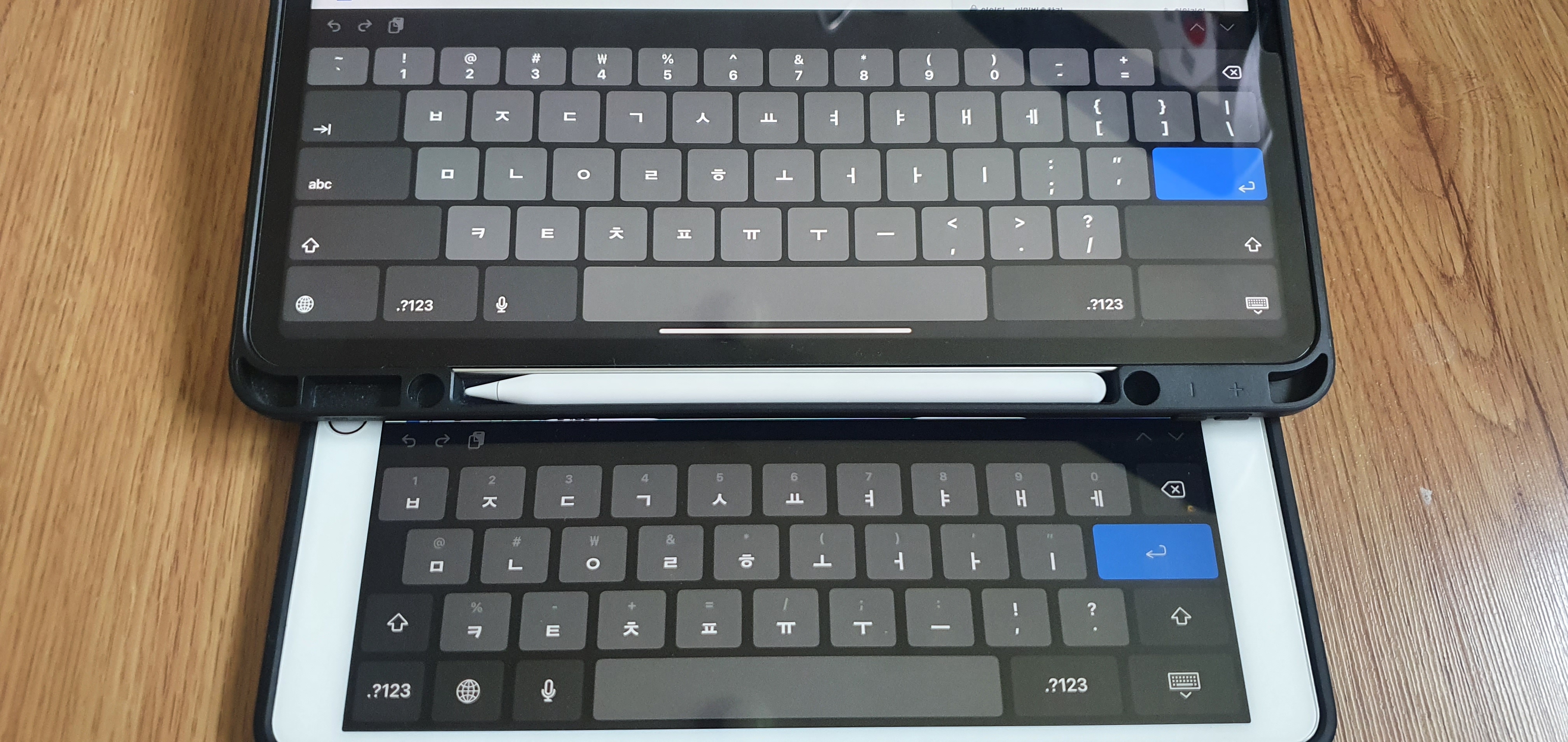 또 한가지, 12.9인치는 나머지 아이패드 종류들과 키보드 배열이 다릅니다.