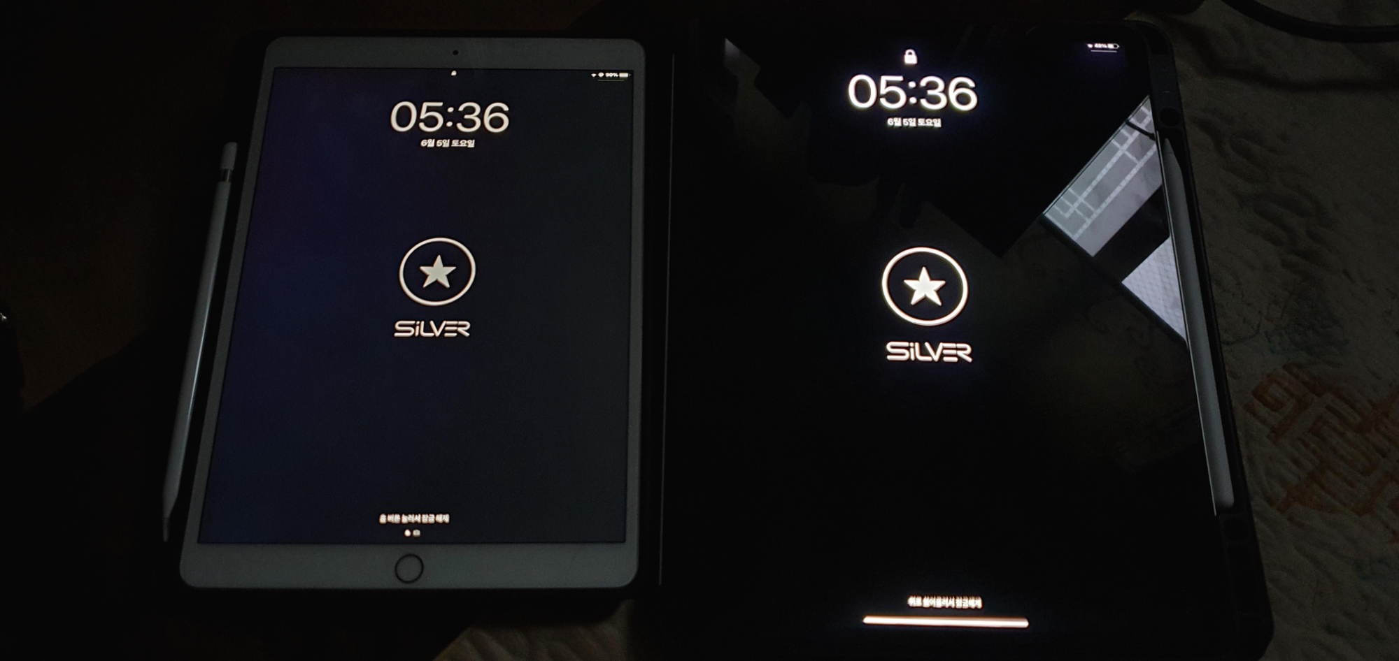 왼쪽이 10.5 오른쪽이 프로 5세대 입니다.