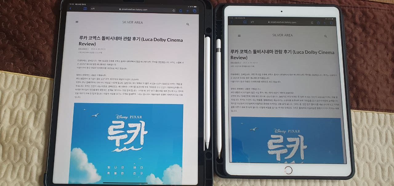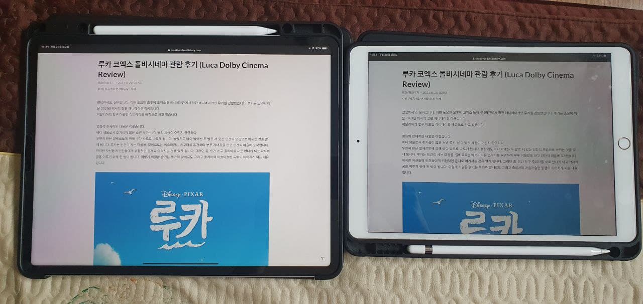 크게 두 부분으로 나눠서 소감을 밝힙니다. 첫 번째는 기존 패드와 차이점에 대해서, 두 번째는 10.5인치(11인치)를 사용하다 12.9인치로 크기 변경을 하면서 느낀 점 이렇게 두 부분으로 나눠 이야기하고자 합니다.