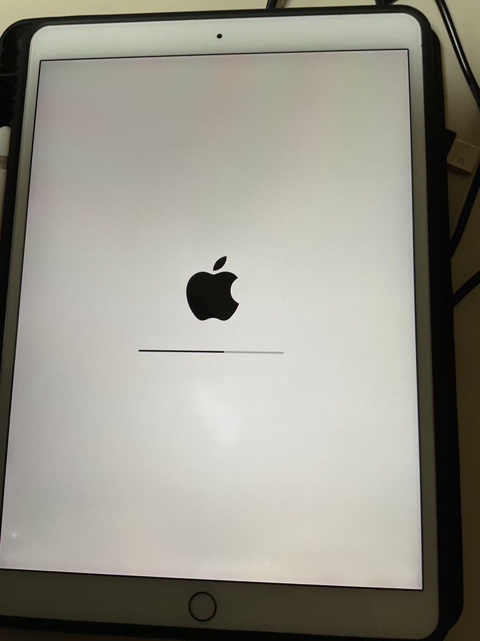 처음 아이패드에 전원을 넣었을 때와 같은 화면이 나옵니다. 그러면 OS업데이트 하듯 사과모양의 애플 로고가 나오면서 초기화가 진행됩니다.