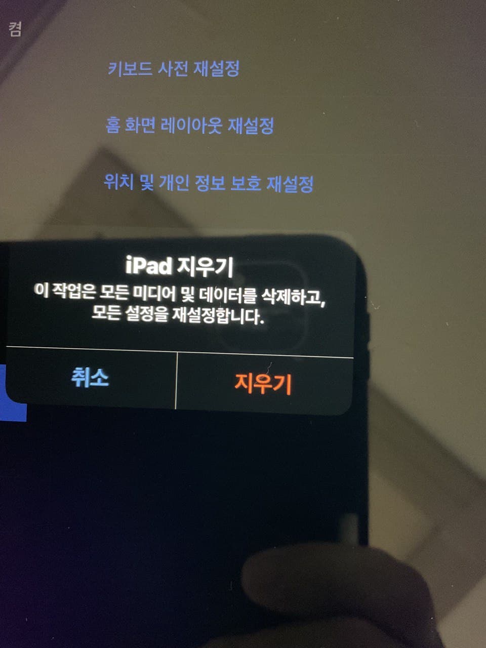 중고로 판매할 아이패드에서 할 수 있는 것은 여기까지입니다.