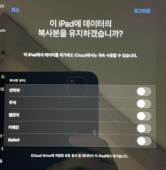 중고 판매를 위해 제 사용 흔적, 데이터가 남으면 안되므로 그냥 로그아웃을 눌러줍니다.