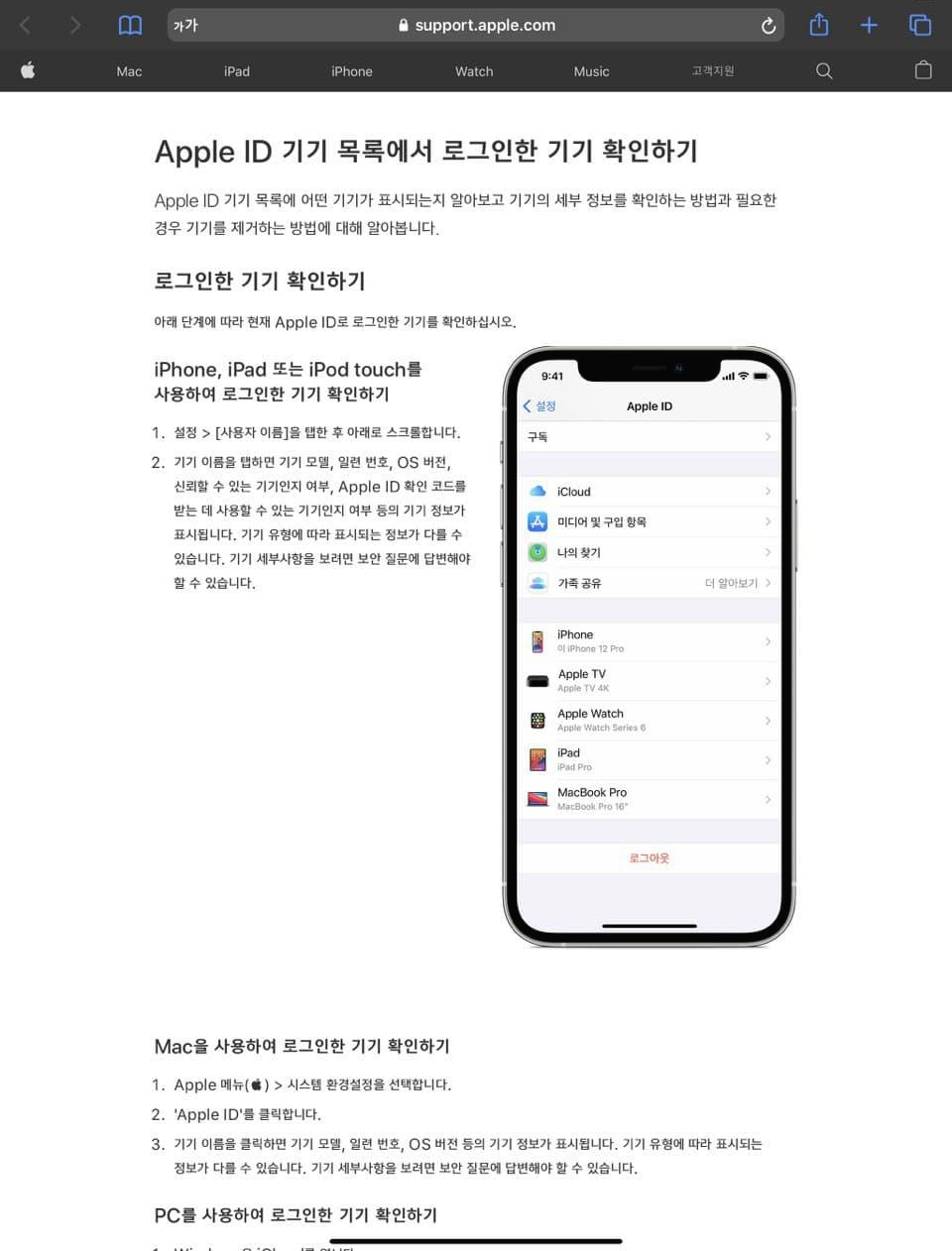 애플 홈페이지나 다른 애플 기기를 통해서 내 계정에 연동된 기기를 확인하면 됩니다.