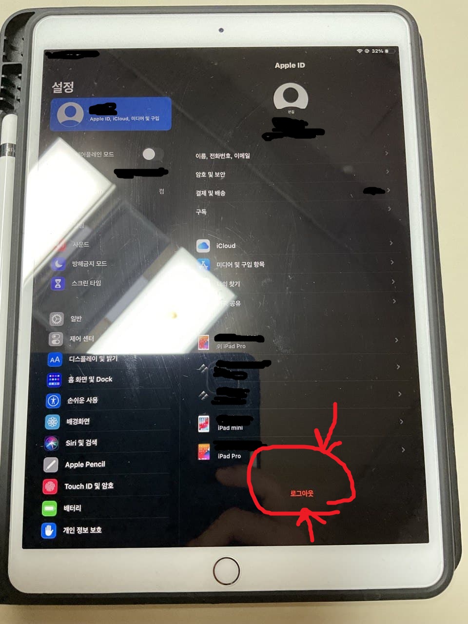 그리고 두 번째는 Apple ID 로그아웃입니다.